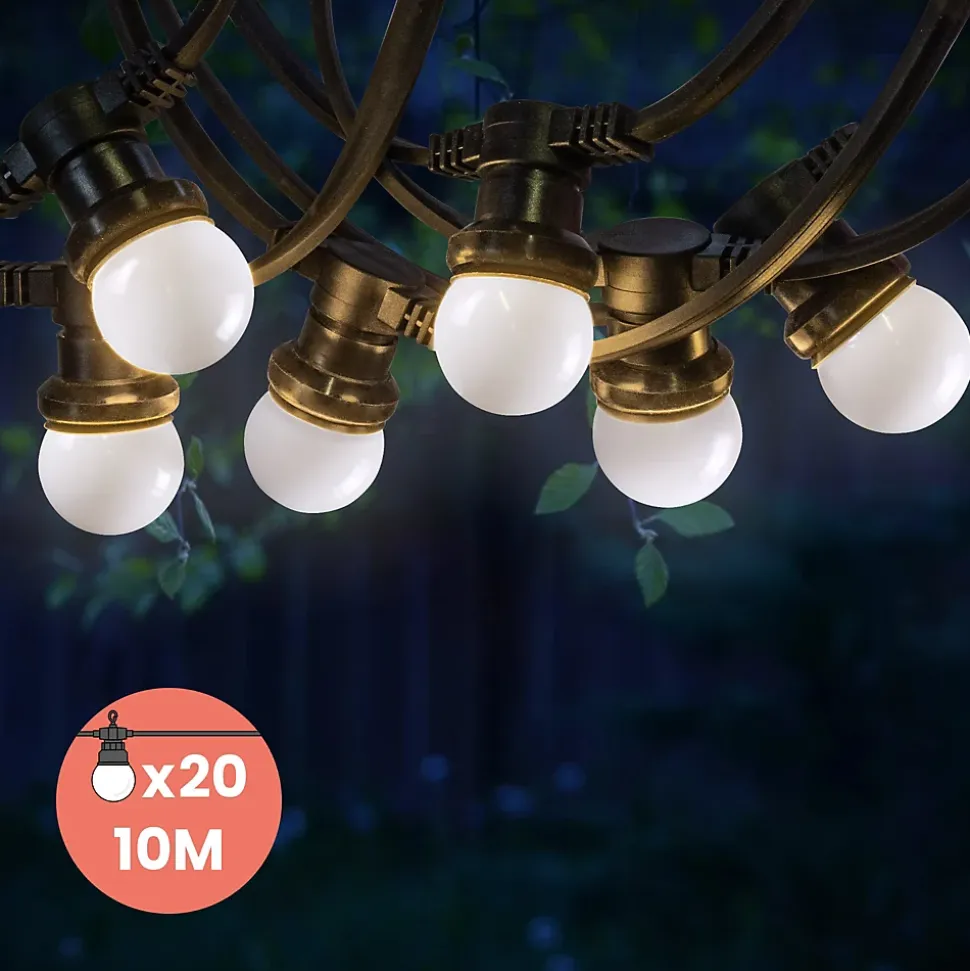 - ECLAIRAGE INTENSE : Notre guirlande guinguette possède 20 bulbes pour 10M de câble ! Grâce aux 8 Leds par bulbes, ses 2800 Kelvins et 100 Lumens, obtenez un éclairage époustouflant ! Changez le style de votre guirlande selon vos envies grâce à nos bulbes remplaçables (compatible avec bulbes E27 SkyLantern) !