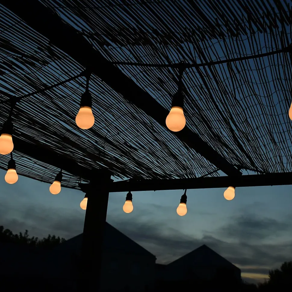 Créez une ambiance digne des bals Ménilmontant et apportez une touche festive à vos extérieurs avec l’authentique guirlande guinguette ! Indémodable ! Qualité professionnelle !• Nb d’ampoules : 10 ampoules LED, forme A60• Culot : E27• Dimensions : L5 m• Prolongeable : jusqu’à 100m• Usage : Intérieur/Extérieur IP44• Alimentation : Filaire• Puissance : 25W• Tension : 230V• Couleur du câble : noir• Matière : Caoutchouc• Qualité professionnelle• Garantie : 2 ansUsage et installation : Son indice IP 44 vous garantit une utilisation extérieure quelque soit la météo tout au long de l’année. Créez un plafond ou redessinez une pergola comme un vrai décorateur. Elle peut servir de décoration sur une terrasse, votre balcon ou bien dans un bar, un restaurant ou un camping.Données techniques et dimensions : Ce pack comprend une guirlande guinguette de 5m et 10 ampoules LED Blanc chaud. La guirlande est polongeable jusqu’à 100m. Aucun cordon de prolongement n’est à rajouter, son câble est équipé d’une connectique de prolongement.Source lumineuse : Les ampoules sont intercheangables et remplaçables. Ampoule haute luminosité, qui vous garantit un éclairage optimal pour vos soirées d’été. Chaque douille est équipée d’un anneau de fixation afin de faciliter son installation.Option : Cette guirlande existe également en blanc froid et multicouleur.