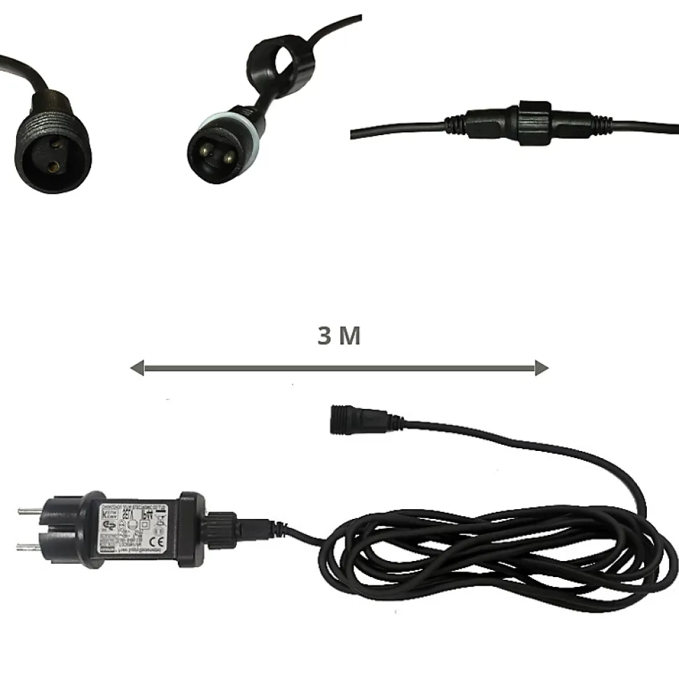 La Guirlande Guinguette LED Noire de 13m 20 ampoules LED est idéale pour une décoration en extérieur grâce à son indice de protection IP65. Décorez votre terrasse, jardin ou votre pergola efficacement avec cette Guirlande LED. Elle est aussi très utilisée pour des décorations d’intérieure pendant les fêtes de noël. Peu consommatrice d’énergie avec ses LED, elle permet d’instaurer une ambiance chaleureuse et relaxante. Cette guirlande guinguette est fournie avec un transformateur 220V 24V + prise murale pour un branchement direct à votre alimentation électrique classique. Ce modèle existe aussi avec différentes longueurs, nombre d’ampoules, couleur de câble ainsi que couleur d’ampoule. Découvrez l’ensemble de notre gamme sur la catégorie Guirlande Guinguette LED. ATTENTION: Les ampoules sont des LED intégrées, elles ne sont pas remplaçables. Il faut bien isoler la prise électrique: toute mauvaise manipulation ou utilisation ne sera pas prise en garantie.