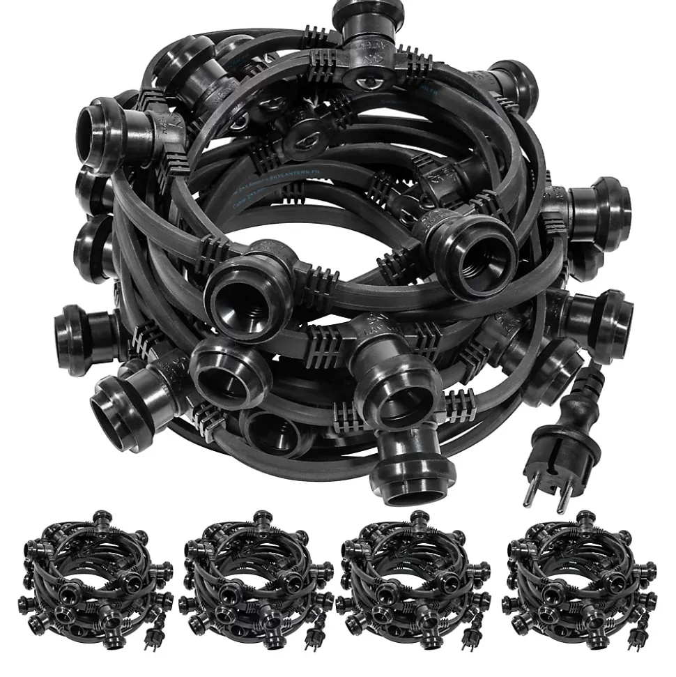 Une Guirlande qui résiste à tous les tempsAttention; cette guirlande n’est compatible qu’avec des ampoules E27 LED de 15W maximum. Les ampoules LED SkyLantern ci-dessous sont parfaitement adaptées à ce modèle.Guirlande d’extérieur de type Guinguette de 50 mètres de long comprenant 150 douilles de type E27 (à vis). La guirlande est livrée sans les ampoules; à rajouter dans votre panier selon vos envies. Cette guirlande dispose d’une norme de protection IP65 qui lui permet de résister à toutes les intempéries.Ce modèle de guirlande guinguette dispose d’un bloc d’extension permettant de mettre jusqu’à 5 guirlandes en série pour atteindre 50 Mètres de longueur. Le câble est renforcé pour une utilisation en intérieur comme en extérieur. Chaque connecteur E27 dispose d’une protection étanche aux normes IP 65.Vous pouvez compléter cette guirlande par nos ampoules LED spéciales guinguette de type E27 présentés en bas de page. De fait; ces ampoules sont remplaçables à tout moment.Jouez avec les couleurs pour créer la plus belle des ambiances guinguette pour votre événement !SkyLantern est LE spécialiste en France de la guirlande guinguette mariage depuis plus de 10 ans. Nos guirlandes guinguettes sont utilisées dans de nombreux mariages; fêtes; restaurants; fêtes nationales en France et en Europe.Elles sont toutes garanties 2 ans.