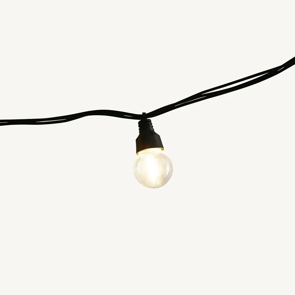 Créez une ambiance digne des bals Ménilmontant et apportez une touche festive à vos extérieurs avec l’authentique guirlande guinguette ! Indémodable ! Qualité professionnelle !• Nb d’ampoules : 10 globes incassables• Couleur de LED : Blanc chaud• Nb de LED : 10 LED• Dimensions : L5m• Couleur du câble : câble noir• Prolongeable : jusqu’à 100m• Luminosité : 210 lumens• Puissance : 5.5W• Tension : 230V• Alimentation : Sur secteur, inclus• Usage : Intérieur/extérieur• Indice de protection : IP44• Matière : Caoutchouc• Qualité professionnelle• Garantie : 2 ansUsage et installation :De qualité professionnelle, cette guirlande garantit un éclairage en toute sécurité. Elle peut décorer votre jardin, votre intérieur tout comme un bar, un restaurant. Son indice IP 44 vous garantit une utilisation extérieure quelque soit la météo tout au long de l’année. Elle peut servir de décoration sur une terrasse, votre balcon ou bien dans un bar, un restaurant, un camping.Données techniques :La guirlande est prolongeable jusqu’à 100m, vous pourrez éclairer une grande surface. Ses 10 globes à filament non démontables sont incassables. Elle est vendue avec son câble d’alimentation.Source lumineuse :La guirlande est composée de 10 LED filament transparents incassables en polycarbonate. Le diametre du globe mesure Ø45mm. Le globe est non démontable et incassable.