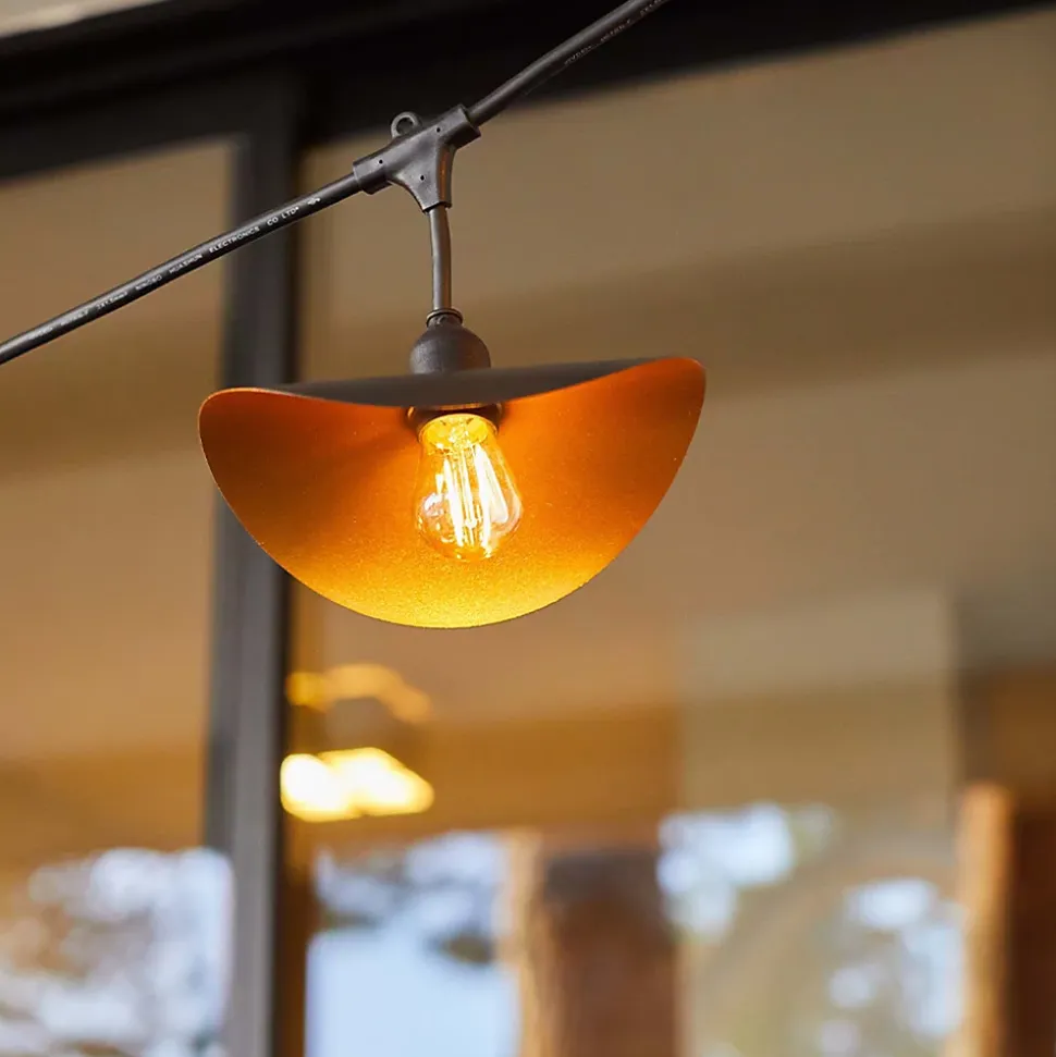 - Cette guirlande lumineuse LED avec abat-jour doré en acier se distingue par son design à la fois vintage et atypique