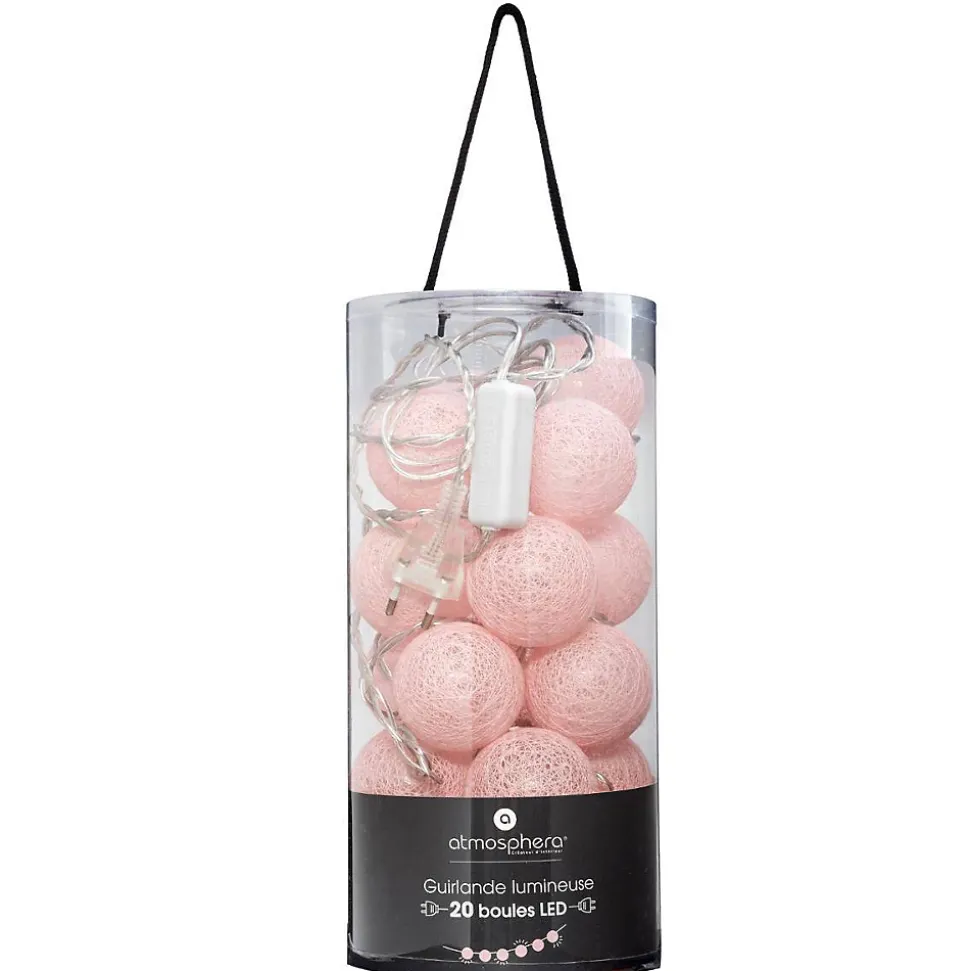 Pour un éclairage discret et original, optez pour la guirlande LED rose Atmosphera.Sobre et moderne Cette guirlande compte 20 boules reliées entre elles contenant chacune une ampoule LED. Votre guirlande diffusera une lumière plus ou moins teintée mais toujours tamisée. Cet accessoire lumineux se branche sur secteur. Accrochez votre guirlande au-dessus de la tête d’un lit Atmosphera pour créer une ambiance cosy dans votre chambre.Le petit plus déco Donnez un esprit guinguette à votre salon en décorant votre bar avec plusieurs guirlandes à LED.