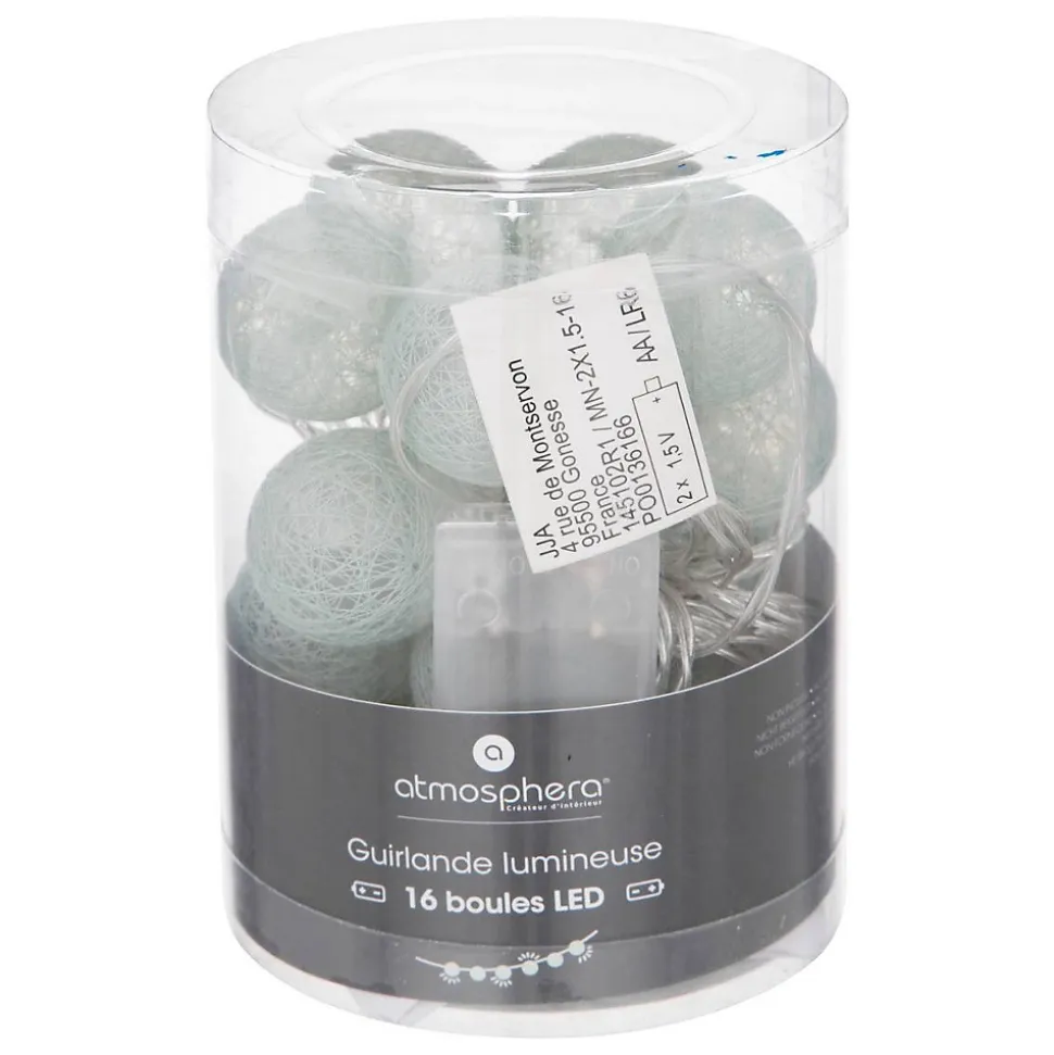 La guirlande led à pile 16 boules Atmosphera diffusera une lumière tamisée et agréable dans votre intérieur.Un éclairage sobre et élégantLa guirlande lumineuse est équipée de 16 boules colorées contenant chacune une ampoule LED. Elle peut être installée dans toutes les pièces de votre maison. Très pratique, cette guirlande led à pile 16 boules fonctionne à piles afin d’être utilisable partout. Disposée sur un meuble, elle servira également d’objet de décoration.Pour une ambiance chaleureuse, placez-la simplement sur une console Atmosphera avec un miroir en rotin.Le petit plus décoCréez une chambre cosy en multipliant les matières douces comme des plaids, des coussins moelleux et un tapis en fausse fourrure.