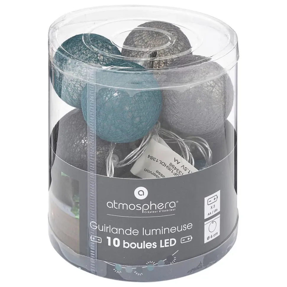 Guirlande Led pile 10 boules « Winter » D6Contenu : 1 guirlandeDimensions : D. 5.8 x L. 165 cmMarque : ATMOSPHERA CREATEUR D’INTERIEUR