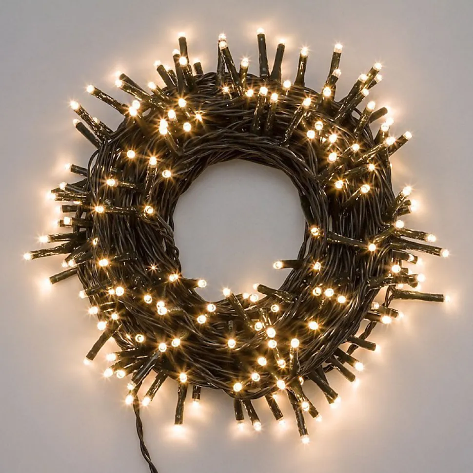 Les caractéristiques techniquesCette guirlande lumineuse peut être installée aussi bien à l’intérieur qu’à l’extérieur grâce à son coefficient d’étanchéité IP44.La partie éclairante mesure 25,7 mètres et le câble d’alimentation 4 mètres.Elle est composée de 360 mini leds qui diffusent une lumière blanc chaud.Elle propose un éclairage fixe et 7 jeux de lumière et une programmation de temps d’allumage 8/16 heures.Cet élément décoratif est également économique : à titre d’exemples une guirlande de 500 Leds allumée 10 heures par jour vous coûtera 60 centimes par mois.Les avantages esthétiques Cette guirlande lumineuse décorative embellira aussi bien votre intérieur que votre extérieur car elle est étanche.Au moment des fêtes de fin d’années, vous pourrez décorer votre sapin. En été, vous donnerez un aspect festif à votre terrasse ou votre jardin.Pour vos evènementiels en extérieur (mariage, fêtes de famille etc) cette guirlande décorative amènera de la magie à la soirée avec ses 7 jeux de lumière programmables.