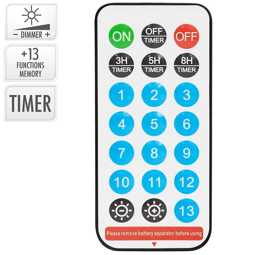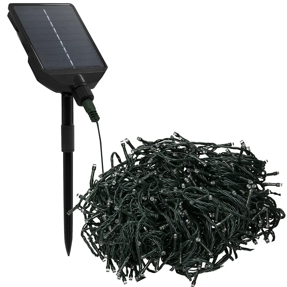 La guirlande lumineuse à énergie solaire avec 560 LED blanc chaud assure un éclairage d’ambiance à l’intérieur et à l’extérieur. Grâce au panneau solaire et à la batterie intégrée, elle est indépendante d’une source d’énergie fixe et s’allume automatiquement à mesure que la nuit tombe. La télécommande fournie vous permet de choisir parmi 13 fonctions d’éclairage différentes, de faire varier l’intensité lumineuse sur 3 niveaux et de régler des fonctions de minuterie pratiques (3h, 5h ou 8h d’éclairage). La fonction de mémoire enregistre le dernier mode sélectionné et le rejoue automatiquement lorsque vous l’allumez à nouveau. De plus, la batterie peut être rechargée si nécessaire via le câble USB fourni – idéal pour les jours où la lumière du soleil est faible. Livraison1x Guirlande lumineuse avec 560 LED1x Panneau solaire avec batterie et indicateur1x Télécommande1x Câble USB (USB Type A vers USB Type C)1x Prise de sol pour panneau solaire Information techniqueCouleur du câble: vertCouleur de la lumière: blanc chaudLEDs: 560 piècesDistance entre les LED: 2 cmLongueur de la guirlande: environ 1100 cmLongueur du câble: environ 300 cmFonctions: 13 modes, fonction mémoireContrôle: sur le panneau solaire ou par télécommandeMinuterie: 3h / 5h / 8h (réglable par télécommande)Variation d’intensité: 3 niveaux de luminosité (via la télécommande)Alimentation: solaire avec batterie intégrée, alternativement rechargeable via USBTemps de charge: environ 8-12 heures à la lumière du jour normaleDurée d’éclairage: environ 6 heures (en fonction de la saison et de l’obscurité)Utilisation: à l’intérieur et à l’extérieur (pour une utilisation à l’intérieur, une lumière du jour suffisante est nécessaire pour le processus de chargement)