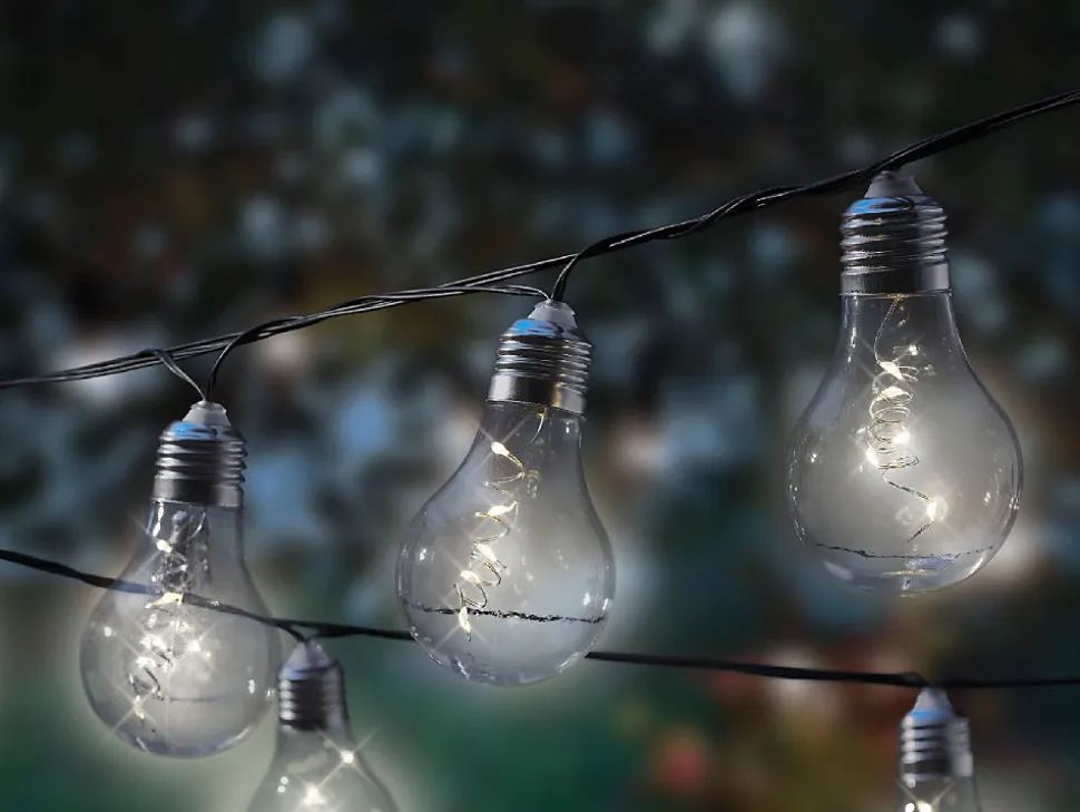 Cette guirlande lumineuse guinguette de 5 m de Jardideco est idéale pour l’extérieur. Fonctionnant à l’énergie solaire, elle est équipée de 10 ampoules LED blanc chaud. Parfaite pour illuminer votre jardin, elle allie praticité et esthétisme.