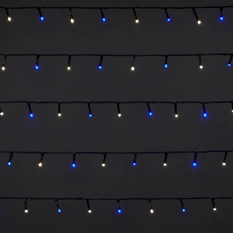 Guirlande lumineuse LED intérieure blanc froid/bleu câble vert 8 fonctions 36 m