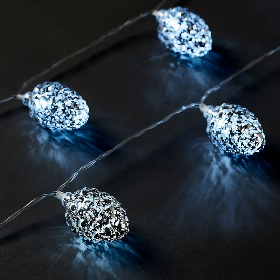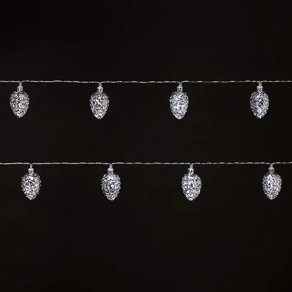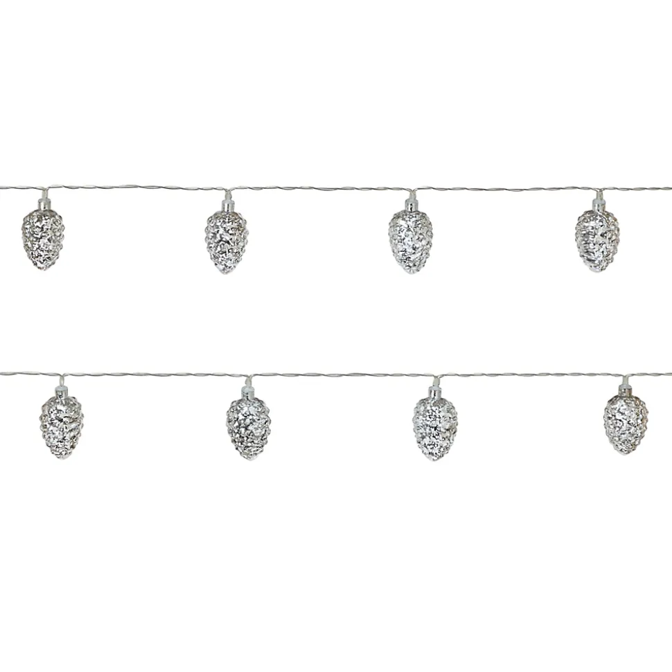 Guirlande lumineuse LED intérieure blanc froid câble transparent 2,55 m décor pomme de pin