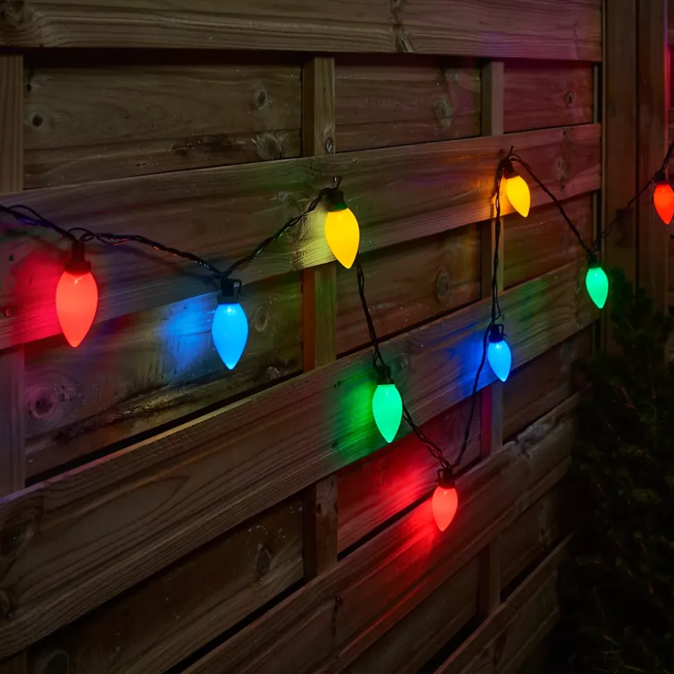 Cette guirlande multicolore peut être utilisée à la fois à l’intérieur et à l’extérieur et peut être raccordée à d’autres. Assemblez jusqu’à 60 lampes pour créer votre propre effet. Idéale pour les décorations de Noël ; mais vous l’aimerez peut-être tellement que vous voudrez la garder toute l’année. Elle est du plus bel effet dans le jardin