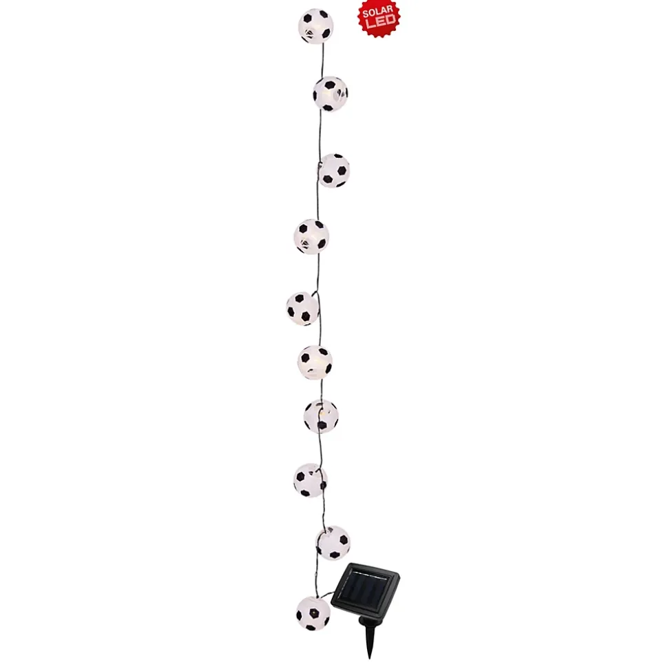 La guirlande lumineuse de la collection FOOTBALL assure un éclairage attrayant dans votre espace extérieur. Les guirlandes lumineuses sont les plus polyvalentes des décorations d’extérieur. Là où elles se trouvent, une ambiance agréable s’installe automatiquement. Cette guirlande lumineuse solaire illumine votre jardin à l’aide d’un panneau solaire qui recharge la batterie pendant la journée et vous rend ainsi indépendant des prises de courant. Cette lampe impressionne par l’association réussie d’un style romantique et de matériaux de haute qualité. Sa forme sphérique claire et son design décoratif s’harmonisent parfaitement, ce qui en fait un véritable point de mire. Grâce à la finition robuste du métal, du plastique et du textile, la guirlande lumineuse devient un véritable objet polyvalent, la couleur noire soulignant son design moderne. Cet article a une dimension de 7,5 cm de large, 7,5 cm de long et 7,5 cm de haut. Cette guirlande lumineuse est équipée de 20 LED de haute qualité qui produisent une lumière confortable et agréable. La puissance totale de la lampe d’extérieur s’élève à 1 watt. L’interrupteur coulissant pratique permet d’allumer et d’éteindre facilement la lampe. Le port USB supplémentaire permet de recharger facilement et rapidement vos appareils. Ce luminaire est équipé d’un astucieux capteur crépusculaire qui assure l’allumage automatique de l’éclairage dans l’obscurité. Grâce à la classe 3 et à l’indice de protection IP44, ce luminaire est parfaitement adapté à une utilisation en extérieur. Dans l’ensemble, les luminaires extérieurs à énergie solaire constituent une solution optimale qui allie durabilité, efficacité et esthétique. Leur installation facile et leurs multiples possibilités d’utilisation en font un choix pratique qui réduit également la consommation d’énergie. L’espace extérieur est ainsi éclairé de manière esthétique.