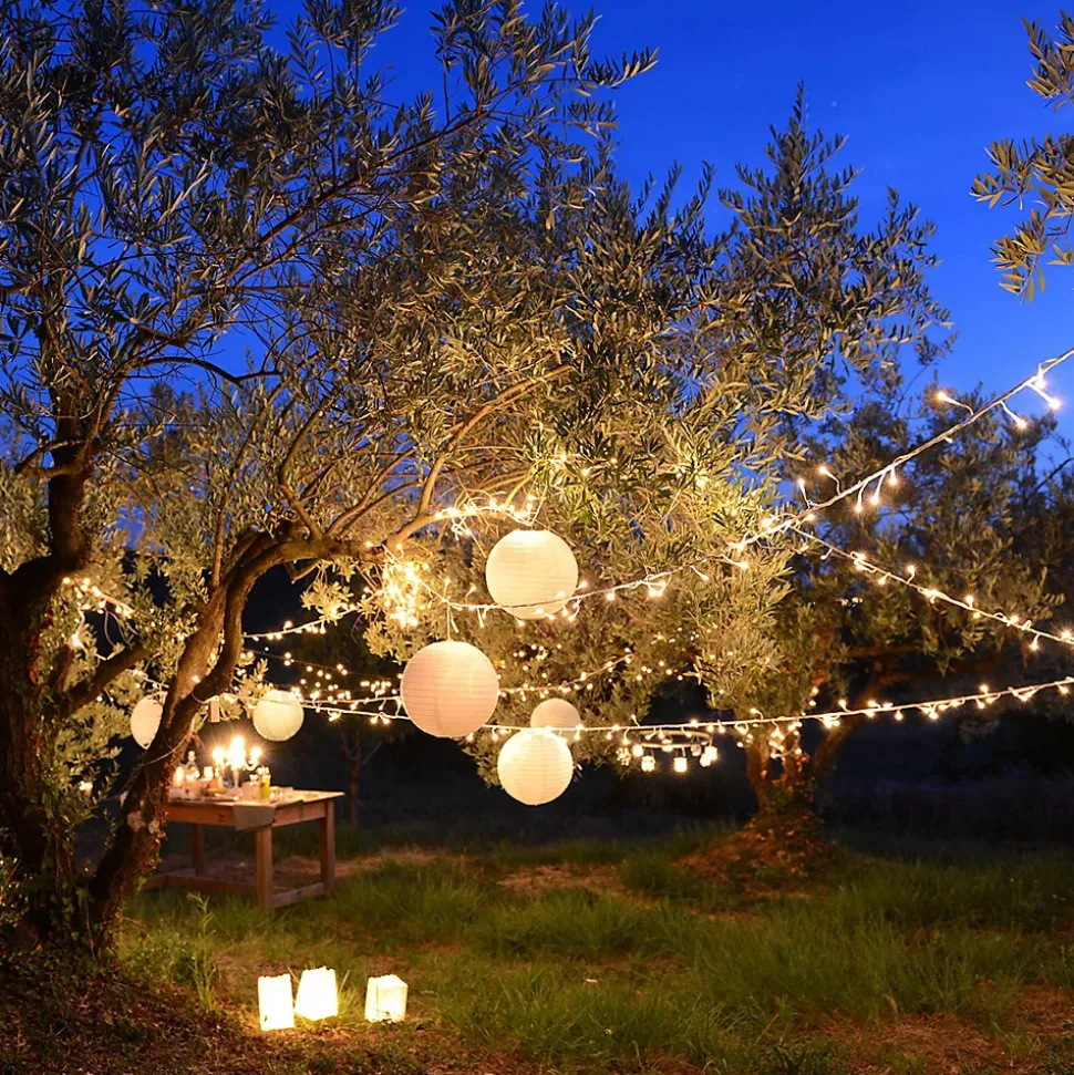 - Guirlande solaire de 200 LED offrant une longue portée de 16,9 m avec lumière blanche chaude pour une ambiance décorative extérieure et intérieure.