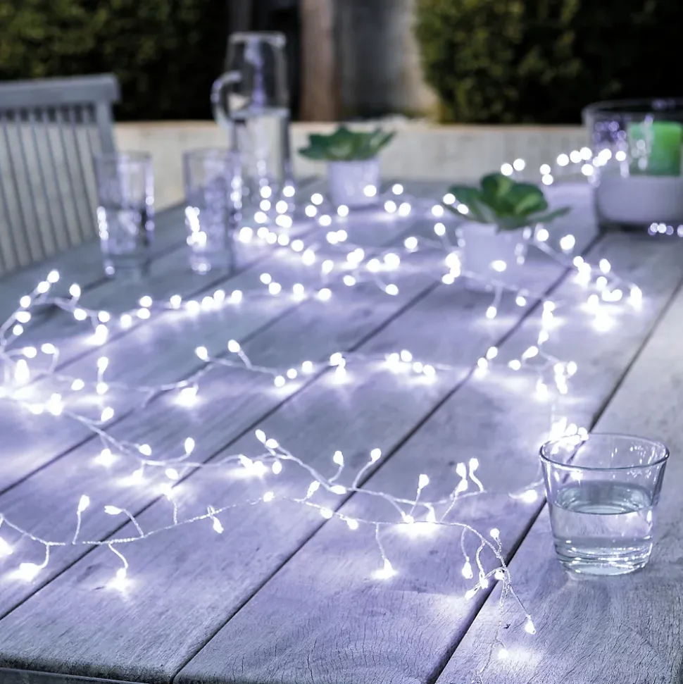 Idéale en DIY autour d’un cadre, d’une échelle ou encore dans un vase, laissez parler votre créativité ! Sa grande longueur et sa luminosité réveilleront vos soirées.• Couleur de la lumière : blanc froid• Nombre de LED : 240• Luminosité : 240 lumens• Dimensions : L:6m, 40 LED au mètre• Puissance : transformateur 230 V/12V• Alimentation : Filaire• Couleur du câble : argent• Matière : Produit en PVC souple câble sécurisé par un revêtement.• Connectable : non• Garantie : 2 ans Usage et installation : Cette jolie guirlande trouvera sa place partout. Son câble discret et ses mircoLED habilleront murs, ciel de lit, vases, arbres. Décorez avec finesse et élégance. Données techniques et dimensions : Dotée de l’indice de protection IP44, votre guirlande résistera à toutes les météos. Simple d’utilisation, il vous suffit de la brancher à une prise secteur. Source lumineuse : Cette guirlande est composée de 40 LED au mètre. La MicroLED nouvelle génération est trois fois plus lumineuse qu’une LED classique.Option: Cette guirlande existe en 3m et 6m, et se décline en blanc chaud et multicolore.