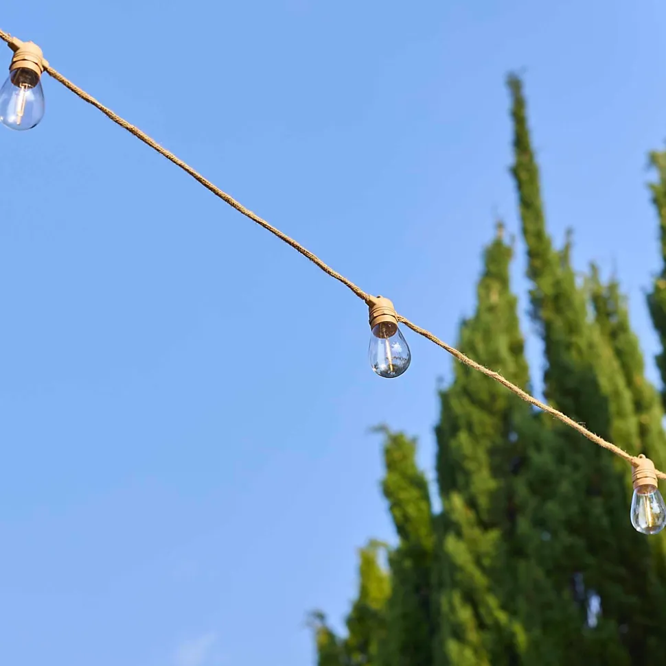 - Longueur de 7,50 mètres avec 10 ampoules transparentes LED blanc chaud.