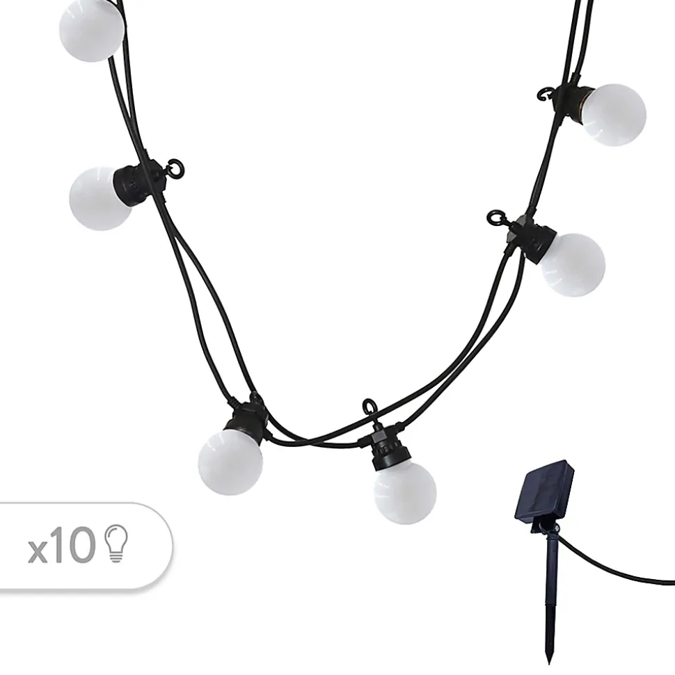 - RobusteE : ainsi, la guirlande lumineuse LED Party Milky Solar design d’une longueur totale de 5,70m composée de 10 ampoules rondes blanches opaques est protégée contre les éclaboussures (IP44) et résiste aussi aux UV.