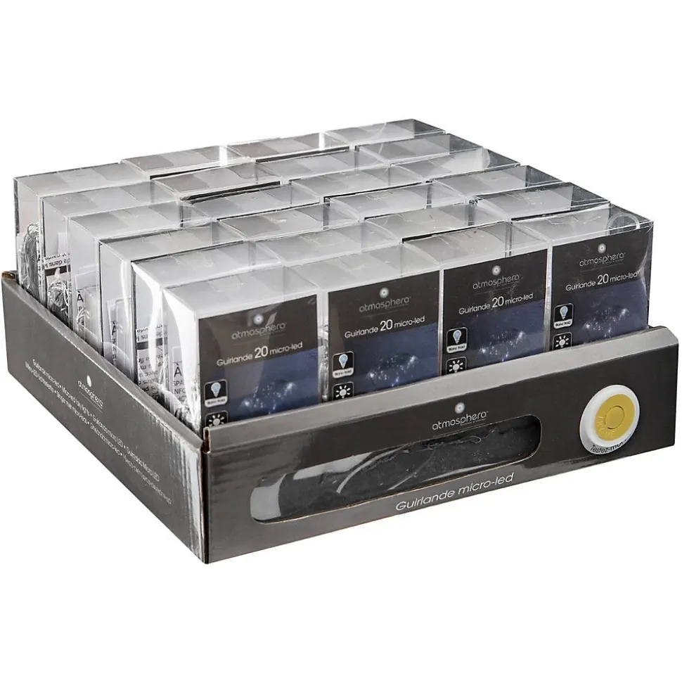 Intégrez un style lumineux à votre décoration avec la guirlande 20 MicroLED Chrome Blanc L190 d’Atmosphera.Cette petite guirlande LED est conçue avec un fil en cuivre de L. 215 cm et 20 LED en PVC.Vous aimerez sans doute son fil argenté, et sa lumière LED blanc froid.Il lui faudra 2 piles AA/LR06 pour fonctionner.Également disponible en guirlande 40 MicroLED Chrome Blanc L370, pensez à l’installer dans la cloche en verre sur socle en bois H29,5 par exemple comme décoration de centre de table.