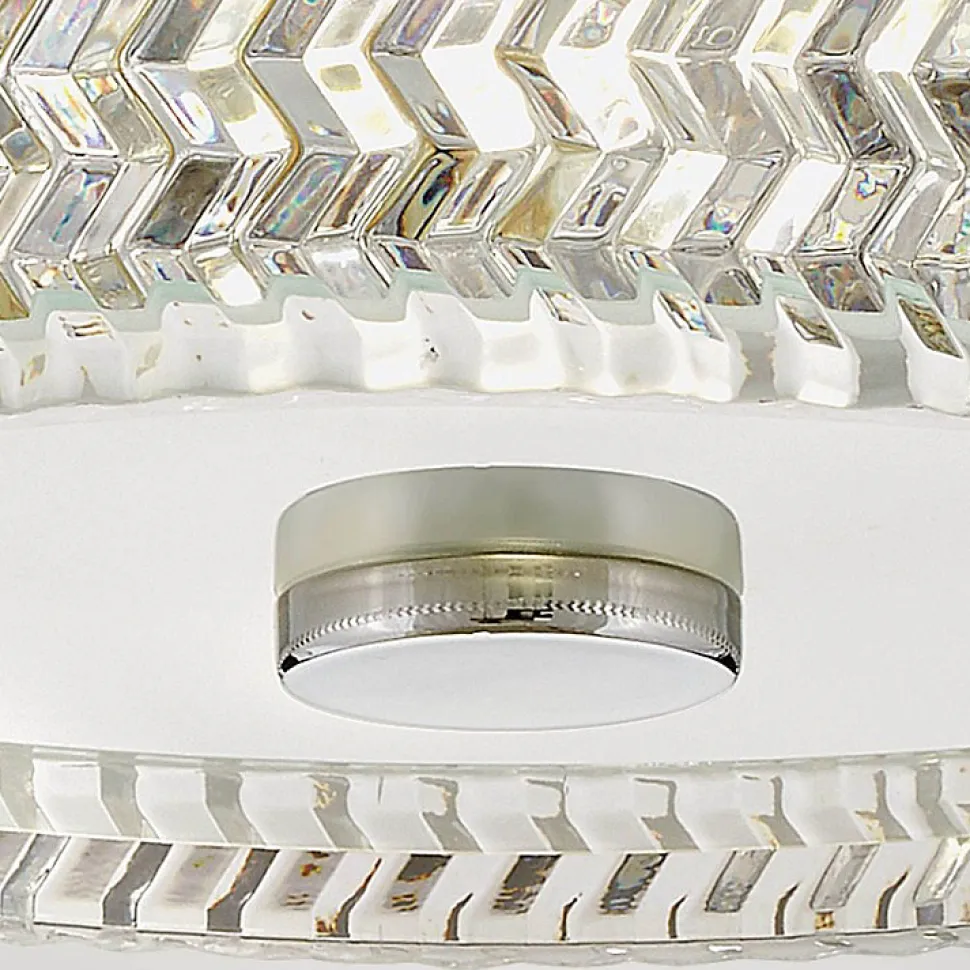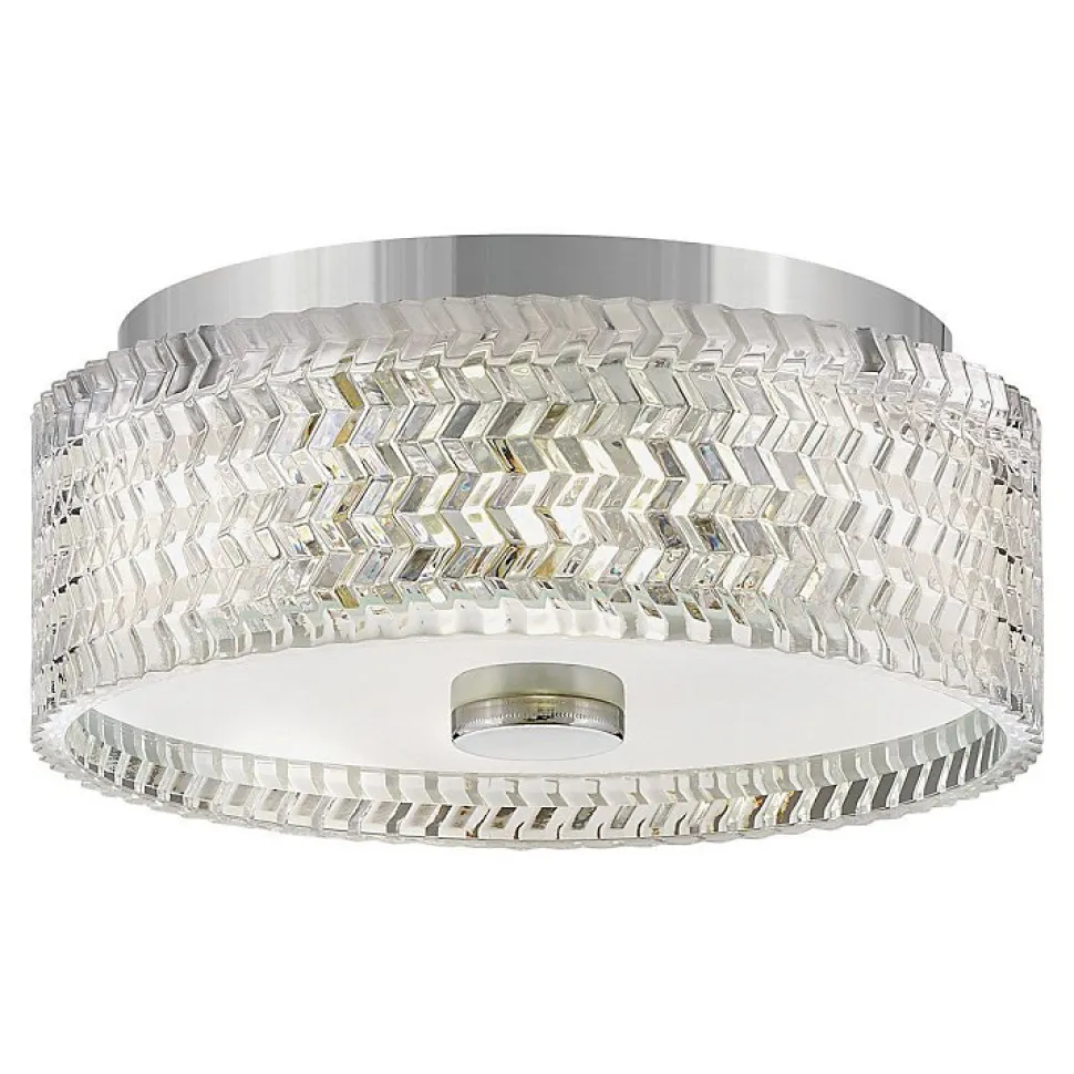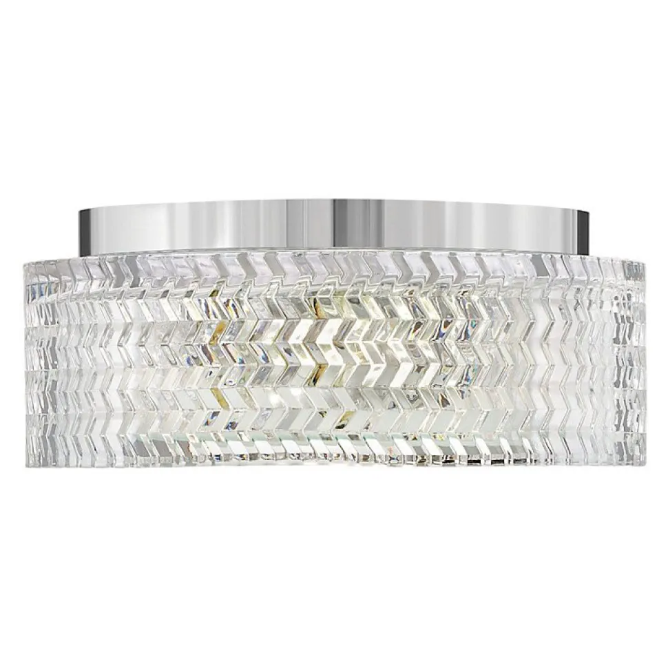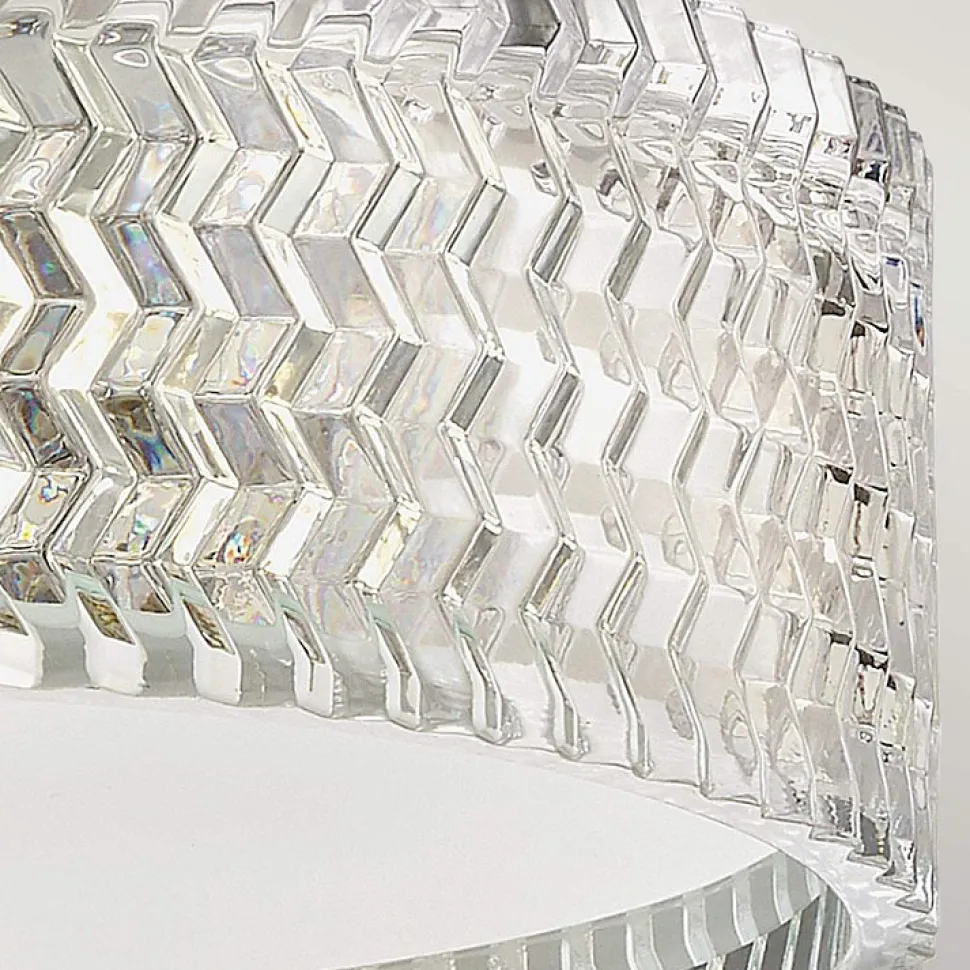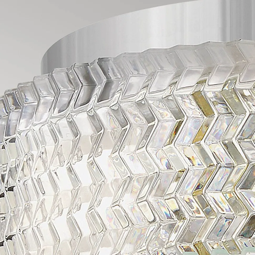 L’élégance traditionnelle avec une touche contemporaine définit le design raffiné d’Elle. Le verre taillé en chevrons crée un jeu de lumière captivant, constituant un point focal saisissant, que la lumière soit allumée ou éteinte. Sa finition métallique brillante accentue le côté glamour du luminaire, apportant une touche de éclat à n’importe quel espace.
