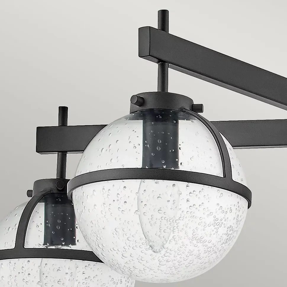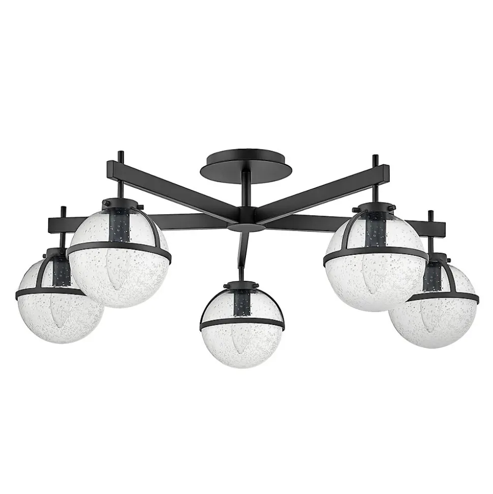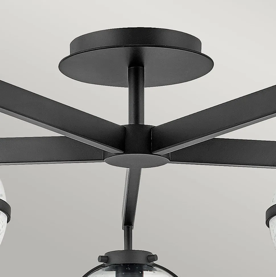 Le design rétro avec des globes de Hollis évoque une ambiance des années 1950, mais ses lignes épurées et sa silhouette sophistiquée offrent une polyvalence pour une variété de décors. Le grand plafonnier semi-encastré à 5 lumières offre un éclairage supérieur pour les pièces avec des plafonds plus bas. Les globes en verre clair à motifs brillent avec une finition noire. Cet équipement est classé IP44 pour une utilisation dans la salle de bains, mais convient également à n’importe quelle autre pièce intérieure.