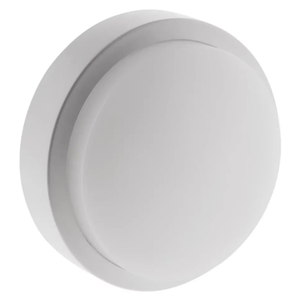 Hublot rond extérieur. Puissance : 8 ou 14W. Intensité lumineuse : 560 ou 980 lumens. Température de couleur : 4000K (blanc neutre). Tension : 230V. Indice de protection : IP54 (étanche à la poussière et aux projections d’eau). Résistance aux chocs : IK06. Utilisation extérieure (terrasse, entrée, garage, jardin…). Fixation murale ou plafond. A l’unité ou en lot