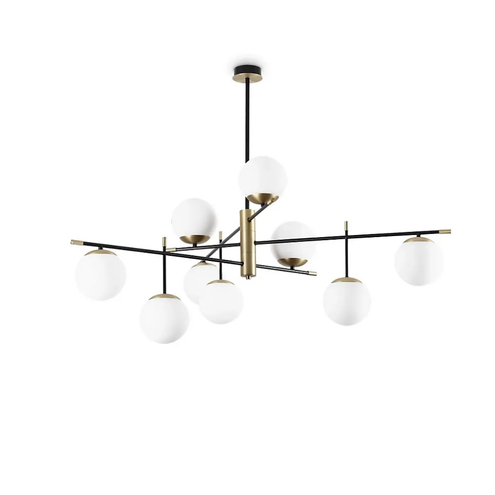 Ideal Lux GOURMET Plafonnier semi-encastré à 9 lumières globe multi-bras noirFini : LaitonMatériau : métal, verreClassement IP : IP20Hauteur : 93 cmDiamètre : 131,5 cmType de lampe : E14Nombre de lampes : 9Dimmable : Oui – Ampoule dimmable requisePoids : 5,4 kgPuissance (max): 9x 40W