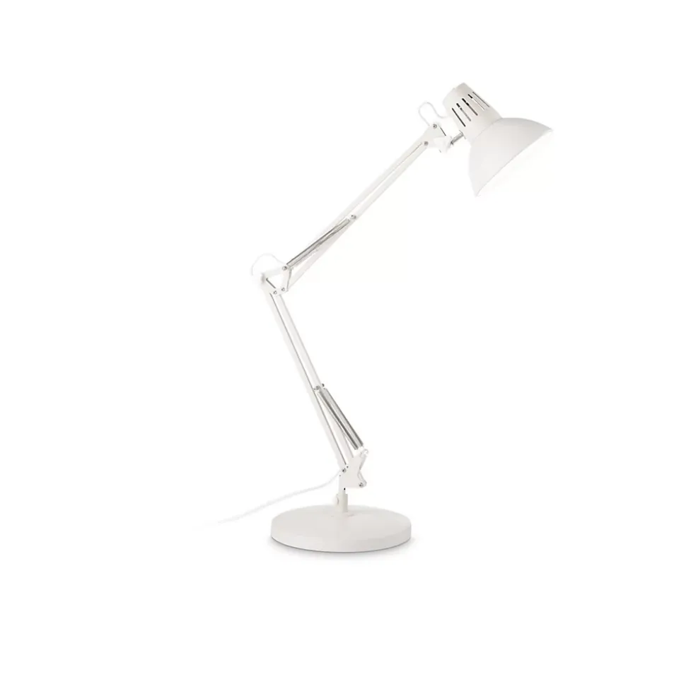 Ideal Lux WALLY Lampe de travail de bureau BlancFinition : BlancMatériau : métalClassement IP : IP20Hauteur : 58 cmLongueur : 20 cmProjection : 36 cmType de lampe : E27Nombre de lampes : 1Intensité variable : oui – Ampoules à intensité variable requisesPoids : 2,45 kgPuissance (max): 42WCommuté : Oui