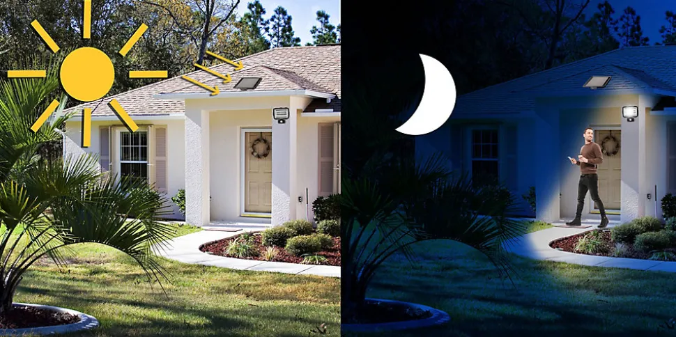 Extrêmement lumineux: grâce à l’utilisation de la dernière génération de LED COB, le projecteur atteint 1600 lumens. C’est un éclairage de sécurité parfait pour éclairer un passage, une entrée … Grâce au détecteur de mouvement, il s’allumera et s’éteindra automatiquement en cas de mouvement. Économie d’énergie: la lampe solaire avec détecteur de mouvement est rechargée par le panneau solaire. Il ne consomme aucun courant électrique. Le panneau solaire et le projecteur sont connectés par un câble de 3,7 m de long. Installation facile: il suffit de fixer le projecteur au mur (support réglable) et de le connecter au panneau solaire à l’aide du connecteur étanche. L’installation est terminée! Étanche et résistant: avec certification IP44 (résistant à l’eau). Structure en polycarbonate extrêmement robuste. Le panneau solaire 1W est en plastique hyper-résistant. La batterie incluse est également remplaçable (Li -ion 1.2Ah 18650): vous pouvez donc augmenter l’autonomie avec une batterie avec encore plus de capacité. Le projecteur est fourni avec un câble USB: vous pouvez donc choisir de ne pas le connecter au panneau solaire mais à un chargeur normal 5V 1A (du type que vous utilisez pour votre smartphone). Il sera toujours opérationnel, même à l’intérieur ou dans des zones non ensoleillées.