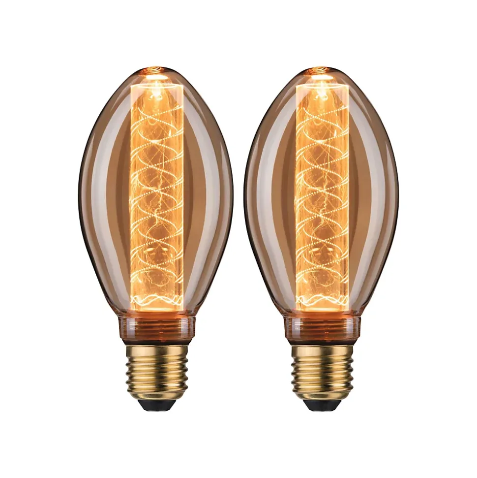 Le kit d’ampoules comprend 2 ampoules Inner Glow dorées. Les ampoules cylindriques diffusent la lumière dans toutes les directions. Les ampoules LED confèrent une parfaite ambiance Vintage et, en version rétro, sont de vraies accroche-regard. Elles ont une température de couleur dorée très agréable.