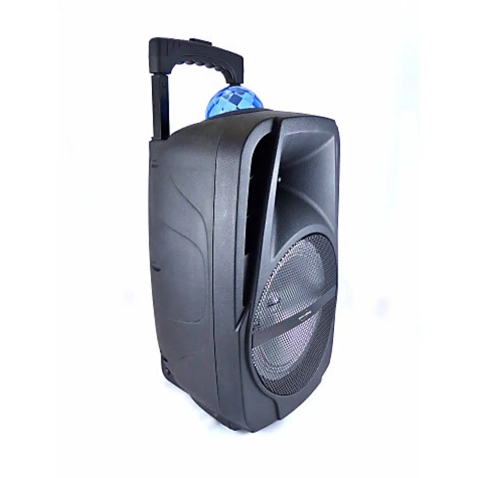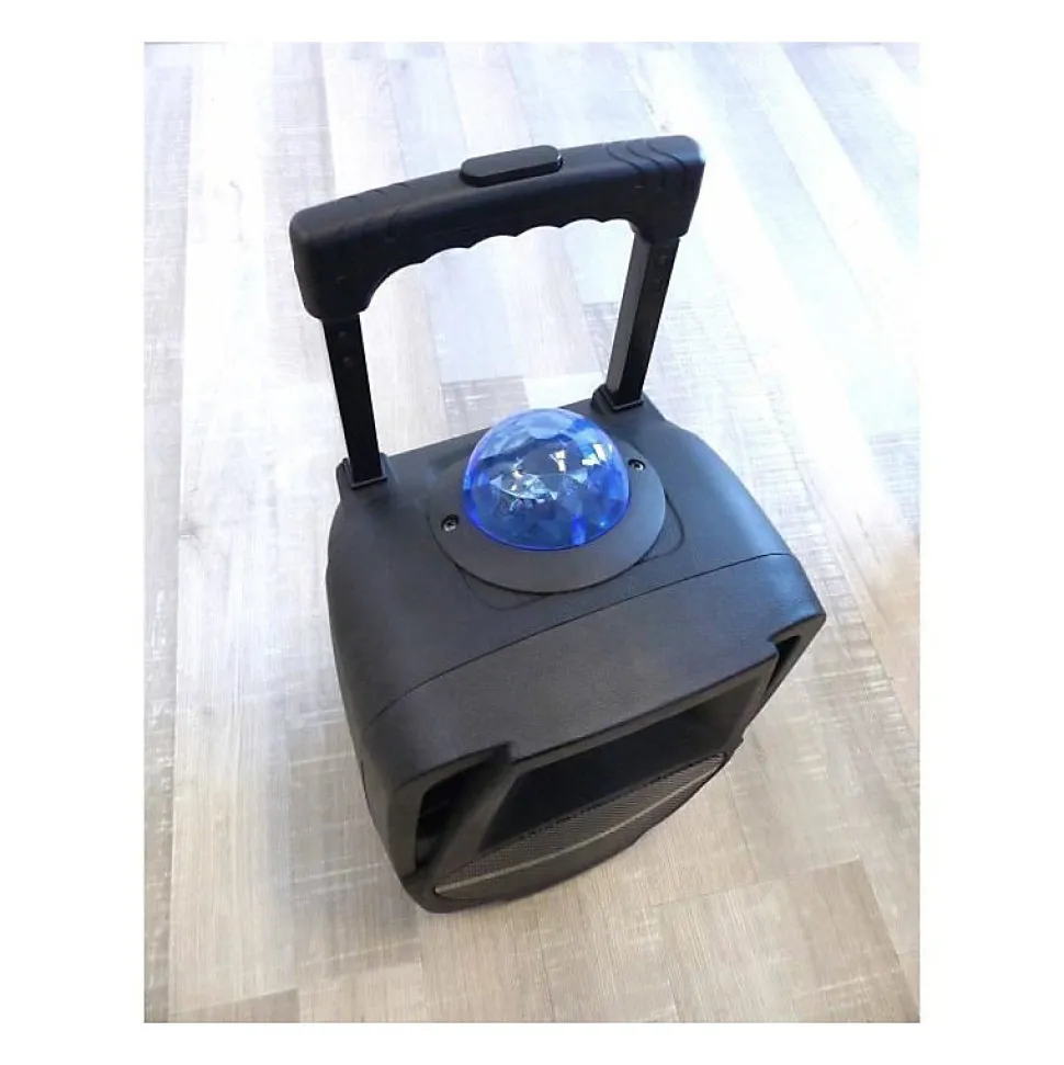 L’enceinte lumineuse INOVALLEY KA116BOWL délivre une puissance sonore impressionnante de 450 Watts avec un haut-parleur de 8 pouces, idéale pour vos soirées et événements. Dotée d’une boule kaléidoscope LED multicolore et d’un dôme lumineux, elle crée une ambiance festive dynamique. Profitez d’une connexion Bluetooth 5.0 stable, d’un port USB et de la fonction True Wireless Stereo (TWS) pour jumeler deux enceintes. Fonction karaoké avec réglages micro et écho indépendants, autonomie jusqu’à 2 heures, et transport facilité grâce à sa poignée télescopique et ses roues intégrées. Accessoires fournis : micro filaire, télécommande et câble USB de charge.