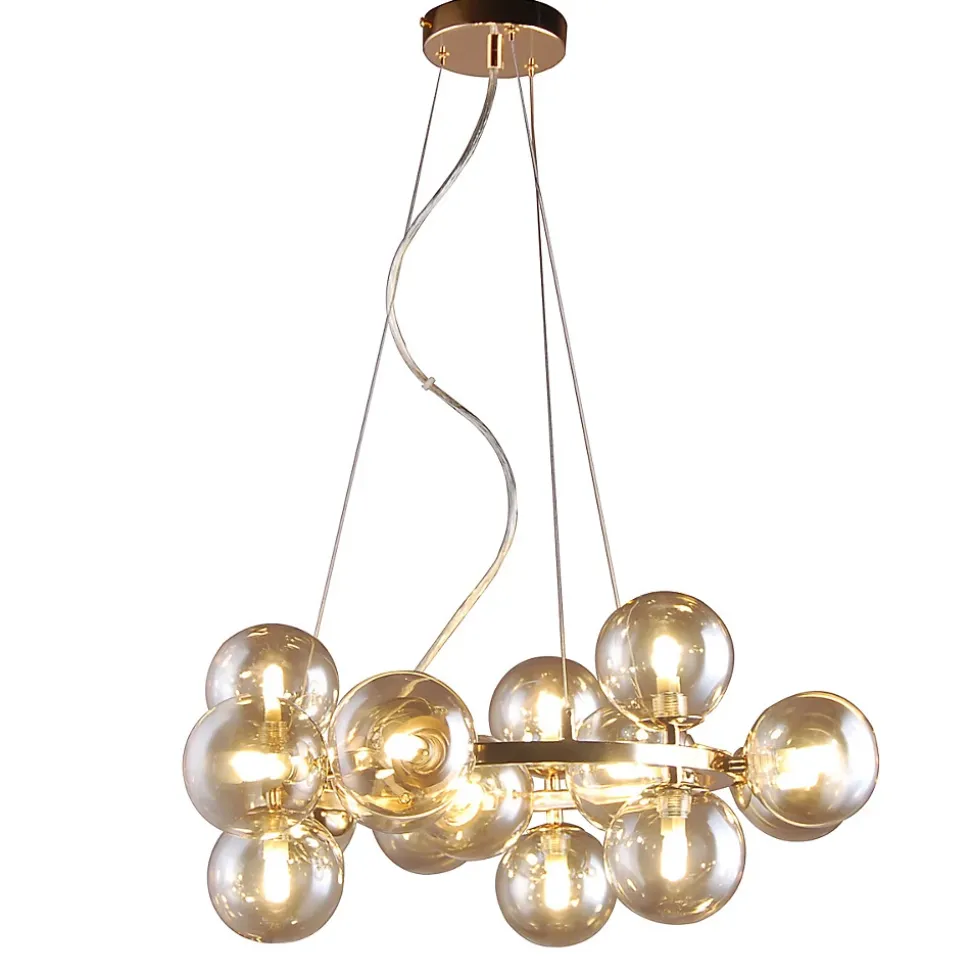Italux Marbelio Plafonnier suspendu moderne à 15 lumières, G9Finition : Or, CognacMatériau : acier, verreClassement IP : IP20Diamètre : 58 cmType de lampe : G9Nombre de lampes : 15Ampoule incluse : non inclusePuissance (max): 28W