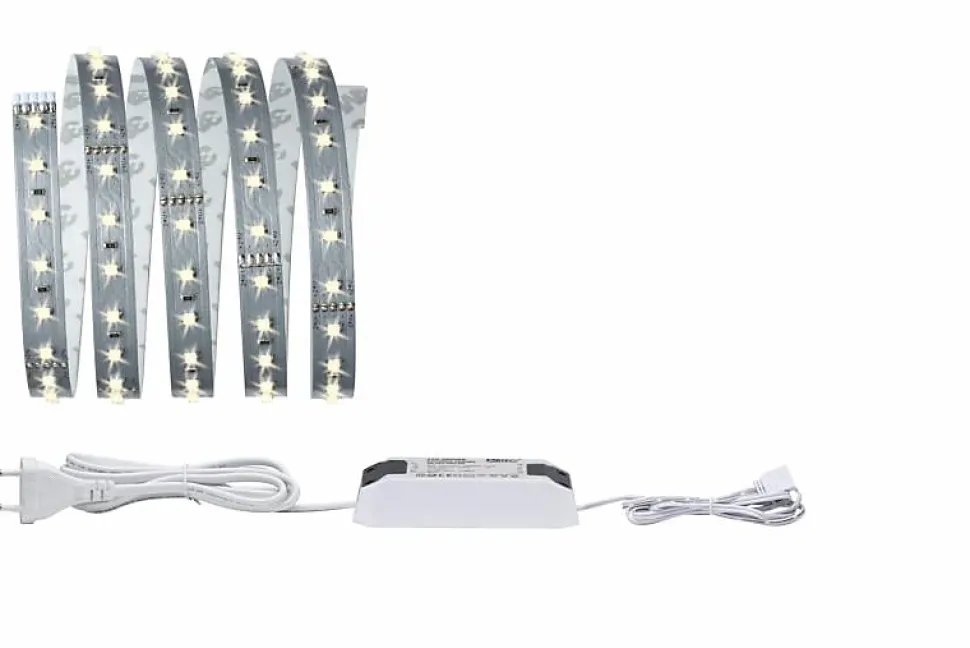 Le ruban Paulmann MaxLED 500 70579 offre un éclairage blanc chaud 2700 K, 1650 lm et 23,5 W sur 3 m. Flexible, autocollant et raccourcissable, il se pose facilement et se connecte via un connecteur mâle 24 V. Extensible jusqu’à 5,4 m avec d’autres rubans MaxLED, il est livré en set avec ballast et notice pour une installation intérieure simple et sécurisée.