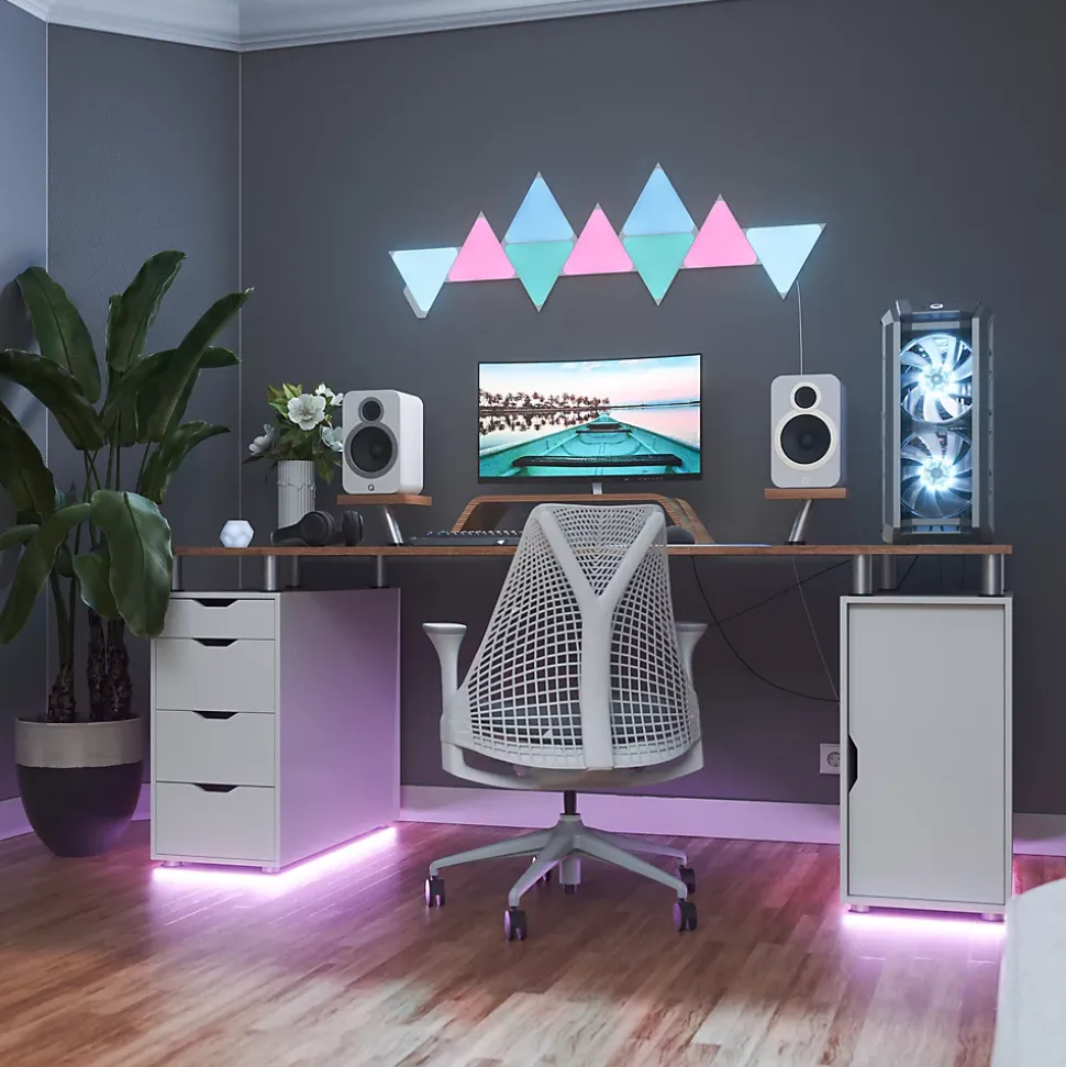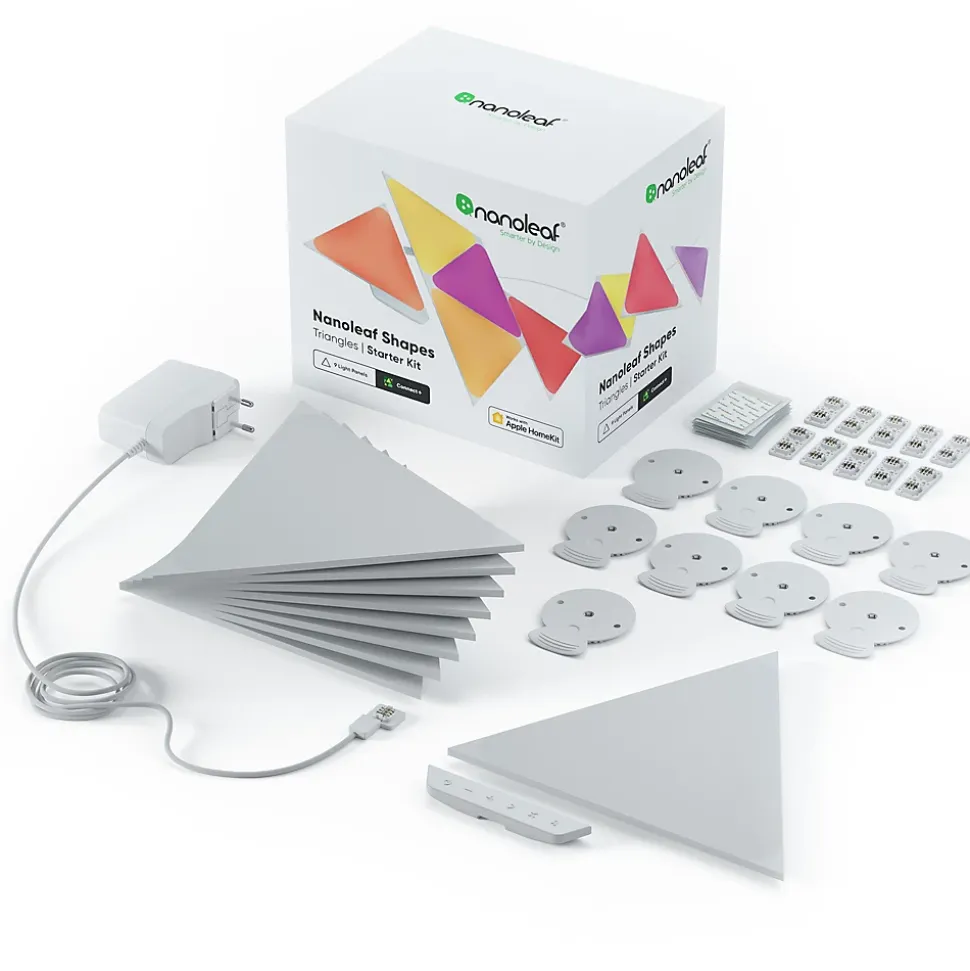 Les Nanoleaf Shapes Triangles sont des appliques murales d’intérieur sous forme panneaux lumineux LED modulaires connectés qui permettent de créer une expérience d’éclairage créative et ludique, pour salon, chambre ou bureau gaming. La combinaison de la technologie et du design des Shapes Triangles ouvre les portes d’un monde de possibilités illimitées pour concevoir, jouer et créer. Transformez votre espace avec des expériences multi-sensorielles comme les actions tactiles, la synchronisation en temps réel avec la musique, la fonctionnalité Screen Mirror et bien plus. Personnalisez et créez vos propres scènes et playlists sur l’application Nanoleaf. Pour installer les panneaux utilisez la plaque de montage ainsi que les bandes adhésives double face incluse. Les Nanoleaf Shapes sont dotés de la fonctionnalité Connect+ permettant de combiner les différentes formes et offrant une multitude de possibilités d’éclairage et de design. Compatibles avec Apple Home, Google Home, Amazon Alexa, IFTTT, Samsung SmartThings, Razer Chroma et Corsair iCue.