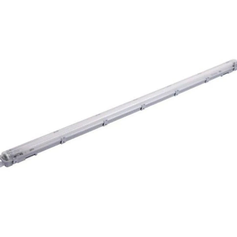Ce kit réglette LED étanche avec tube T8 150 cm 22W est la solution idéale pour un éclairage LED puissant et résistant dans les environnements exigeants. Prêt à l’emploi, il offre performance, sécurité et fiabilité sur le long terme.Caractéristiques techniques du kit LED étanche avec tube 150 cm T8Puissance du tube LED : 22W.Flux lumineux : 2000 lumens, efficacité de 91 lm/W.Angle d’éclairage : 180°, parfait pour une diffusion large et uniforme.Indice de protection : IP65, étanche à la poussière et aux projections d’eau.Tube inclus : T8 LED 150 cm, alimenté sur un seul côté.Dimensions : 158,5 x 6,7 x 6,3 cm.Matériaux : verre + PVC, robustesse et longévité.Température de fonctionnement : de -20°C à +40°C.Durée de vie estimée : ~25 000 heures.Rendu des couleurs (IRC) : Ra 80.Tension : 220-240V AC, fréquence 50/60Hz.Couleur de la réglette : blanc.Classe énergétique : F.Certification : CE & RoHS.Non orientable, non dimmable, non compatible variateur.Garantie : 2 ans.Les points forts de cette réglette LED étanche avec tube T8Ce kit de réglette pour tube LED T8 150cm étanche allie efficacité lumineuse et haute résistance. Grâce à sa protection IP65, il est parfaitement adapté aux environnements humides, poussiéreux ou soumis à des conditions variables. Son angle d’éclairage de 180° permet