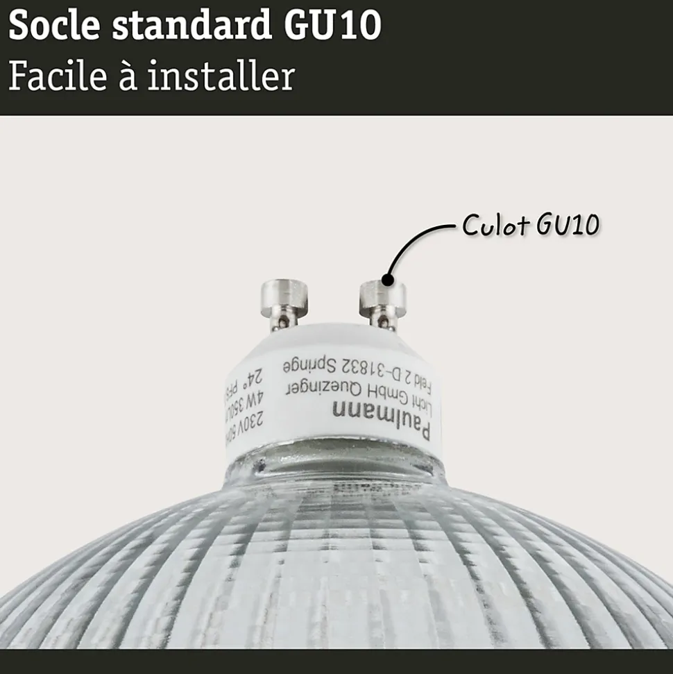 Le kit de trois réflecteurs LED est spécialement conçu pour une utilisation dans les projecteurs, spots et encastrés. Grâce à la technologie LED performante et un culot GU10, ils offrent une lumière dirigée et une longue durée de vie. Avec une température de couleur de 2700 K, l’ampoule diffuse une lumière blanc chaud. Avec sa lumière ciblée, elle convient pour une utilisation dans les pièces de vie, les bureaux ou dans le domaine de la restauration.