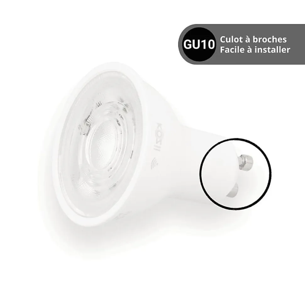 KOZii – Ampoule LED connectée KOZii, éclairage blancs + couleurs, GU10 Spot 5W Variation de couleur et luminosité – KG50SRVBCCT