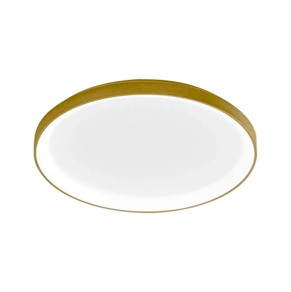 Lampe de la série Krizia de couleur or.Structure en aluminium doré brossé. Diffuseur en acrylique blanc opale. Source de lumière LED, dimmable via variateur externe + push (non inclus).- Puissance : 50W- Flux lumineux : 4000lm- Température de couleur : 3000K- Indice de protection IP20- Classe : Classe I- Catégorie : Plafonniers. Idéal pour les environnements modernes, il allie fonctionnalité et design pour éclairer avec style chaque espace de la maison. Fabriqué avec des matériaux de haute qualité et des finitions soignées, il garantit une durabilité et un impact esthétique raffiné. Un élément d’ameublement lumineux qui embellit les salons, les cuisines, les chambres et les entrées d’une lumière enveloppante. Design contemporain et éclairage efficace dans un seul produit, parfait pour ceux qui recherchent l’élégance et la praticité ou pour compléter le mobilier avec une touche de lumière raffinée, sans sacrifier la performance