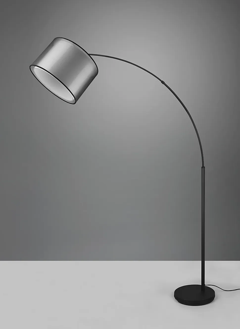 Un éclairage chic et cosyApportez une touche d’élégance à votre intérieur avec le lampadaire BURTON de TRIO. Son design incurvé et son double abat-jour aux teintes contrastées (intérieur blanc et extérieur organza fumé) créent un jeu de lumière subtil et chaleureux. Parfait pour une installation à côté d’un canapé ou d’un fauteuil, ce lampadaire diffuse une lumière d’ambiance idéale pour les moments de détente ou de lecture.Matériaux raffinés et design moderneLa combinaison du métal noir mat pour la structure et du tissu organza pour l’abat-jour donne à ce luminaire une esthétique contemporaine. L’interrupteur à pédale ajoute une touche pratique et discrète, pour un allumage facile au quotidien. Grâce à ses lignes sobres et raffinées, le lampadaire Burton s’intègre aisément dans un salon, une chambre ou un espace de lecture au style moderne ou scandinave.Compatible avec ampoule LEDFonctionnant avec une ampoule E27 (non incluse, max. 10W), ce luminaire est idéalement associé à une ampoule LED pour une consommation réduite et une durabilité accrue. Les LEDs permettent d’économiser jusqu’à 80 % d’énergie tout en offrant une lumière de qualité, une faible émission de chaleur et une longue durée de vie.