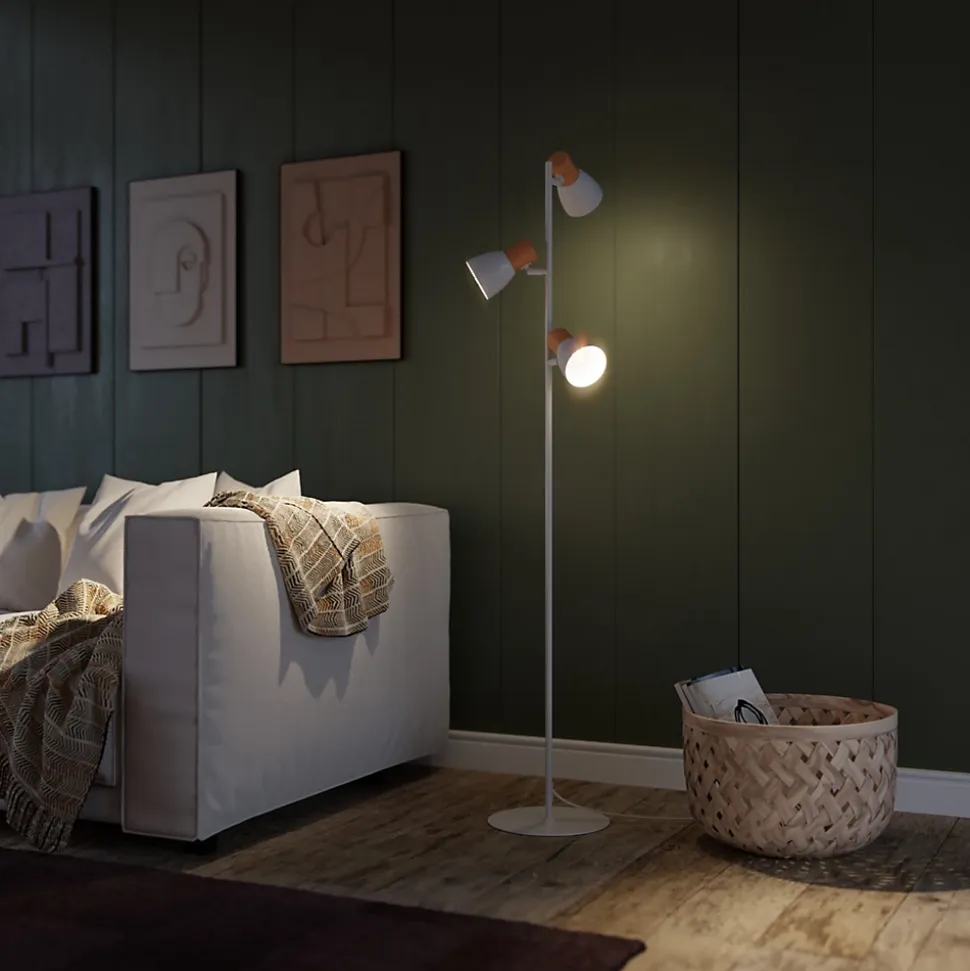 Lampadaire 3 lampes bois et métal blanc Cornflower H.156 x Ø28cm E27 25W GoodHome