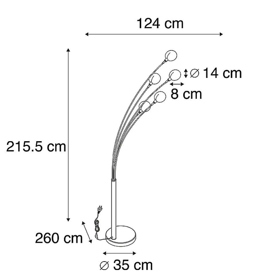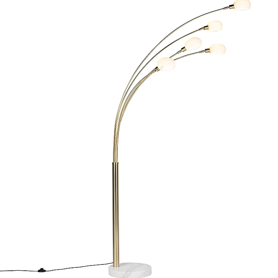 Parlez d’un lampadaire élégant, que pensez-vous de ce Sixties Marmo ? Ce luminaire saisissant peut accueillir pas moins de 5 ampoules. Amusant, n’est-ce pas ?! Ce modèle attire tous les regards, avec une hauteur de 215,5 cm, une longueur de 124 cm et une largeur de 14 cm. Sa base en marbre lourd a un diamètre de 35 cm. Le cordon mesure 260 cm de long et est équipé d’un interrupteur marche/arrêt. Ce lampadaire Sixties Marmo vintage en or/laiton saisissant possède 5 petits culots E14 et est fourni sans ampoules. N’oubliez pas de les commander séparément (40W maximum chacune). Les 5 points lumineux sont dotés d’abat-jour blancs. Le luminaire est compatible avec un variateur externe (non inclus). Choisissez des ampoules à intensité variable, car ce lampadaire possède de nombreux points lumineux, ce qui vous permettra de créer l’ambiance idéale. Ce lampadaire super cool trouvera sa place dans un salon, une chambre à coucher, mais aussi dans un couloir ou un bureau. Il donne à votre intérieur un look chic d’hôtel.