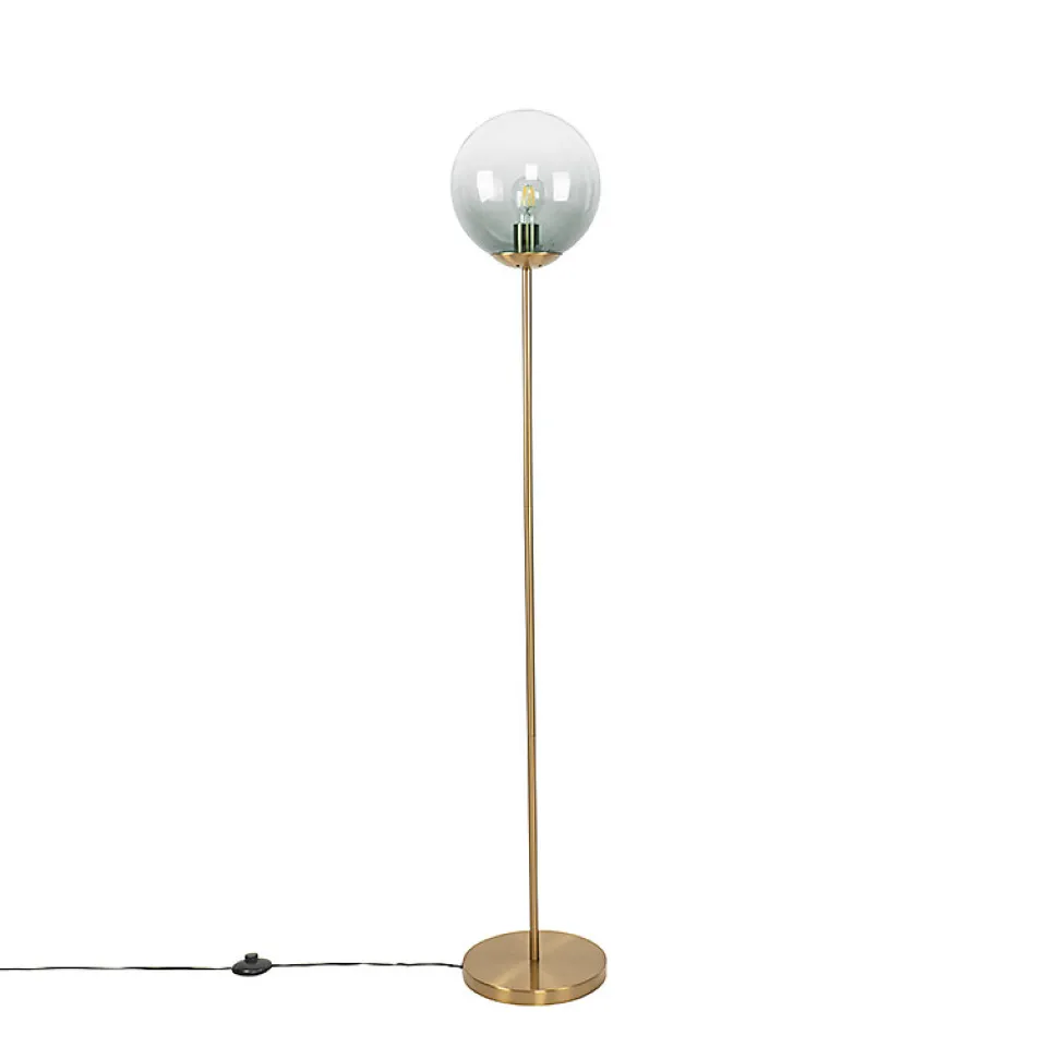 Apportez une ambiance Art déco amusante à votre intérieur avec notre lampadaire en laiton. Pallon Mezzi est fini en laiton avec du verre vert clair, ce qui procure une lumière d’ambiance chaleureuse. Un véritable accroche-regard ! Ce lampadaire vole la vedette dans le salon ou dans le hall. C’est également une belle lampe d’ambiance dans la chambre à coucher. Le diamètre de la base est de 25 cm et le lampadaire a une hauteur totale de 143 cm. Le cordon fourni mesure 250 cm de long. Vous pouvez compléter notre Pallon Mezzi avec une ampoule E27 (40W maximum). Cette ampoule n’est pas incluse. Vous pouvez l’atténuer le soir avec un variateur externe (non inclus) ; créez une ambiance cosy avec notre Pallon Mezzi dans votre maison !