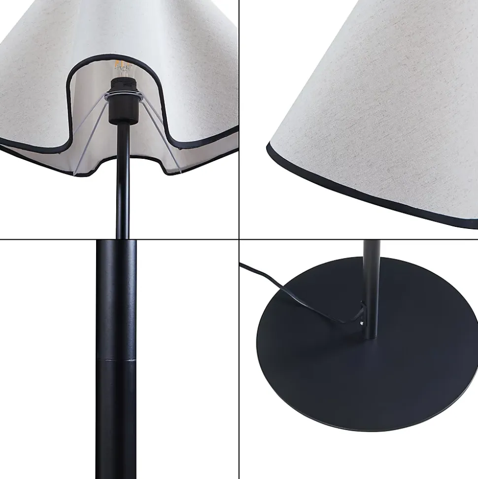 LampadaireCe lampadaire, au design élégant, s’intègre harmonieusement dans tous les styles d’intérieur, du moderne au classique. Il offre une lumière agréable et ajoute une touche de raffinement dans votre salon, bureau ou chambre à coucher.Une autre particularité de ce luminaire est son pied, qui garantit une bonne stabilité et contribue à la réussite de son design.Avec une longueur de câble d’environ 180 cm, il peut être aisément placé dans différents coins. De plus, son interrupteur au pied du câble permet une utilisation facile.Points forts du produit :- lampe sur pied intemporelle- parfait pour le salon, le bureau ou la chambre- abat-jour incurvé- allumage et extinction facilités grâce à une pédale pratique- câble long pour un placement flexible dans la pièce- excellente stabilité- avec douille intégrée pour ampoule adaptéeCaractéristiques techniques :- douille : 1 x E27, max. 60 W (livré sans ampoule)- tension : 230 V, 50 Hz- indice de protection : classe II- type d’interrupteur : interrupteur au piedDimensions :- hauteur totale : 153 cm- abat-jour (l x p) : 42,5 x 42,5 cm- diamètre du socle : 28 cm- longueur du câble : 180 cmMatière :- structure : métal- abat-jour : tissu (100 % polyester)Couleur :- structure : noir- abat-jour : blanc / noirContenu de la livraison :1 x lampadaire (ampoule non incluse)Produit de la marque :lux.pro