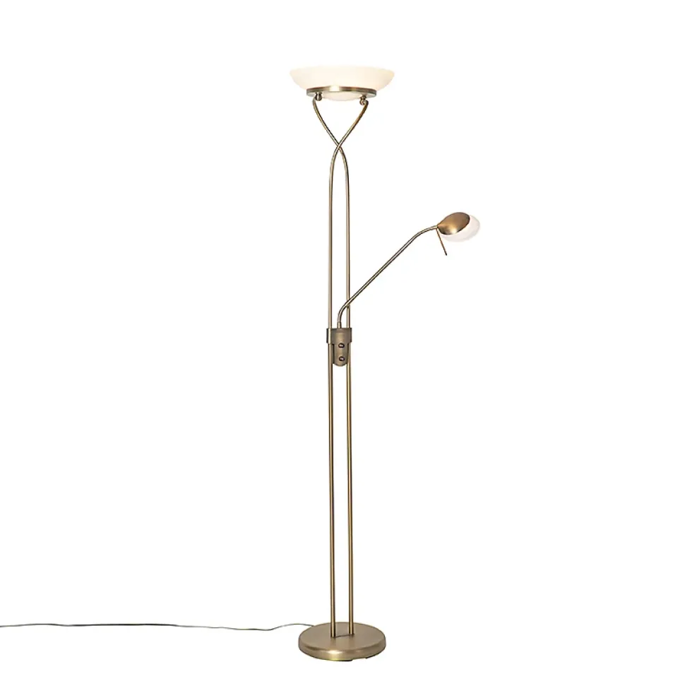 L’Empoli a tout pour plaire : un lampadaire moderne avec une liseuse. Son armature en acier est de couleur bronze, ce qui lui confère un aspect intemporel, tout comme le verre. Le lampadaire a un diamètre de 32 cm et une hauteur totale de 180 cm. Le bras réglable mesure 65 cm de long. La base de la lampe a un diamètre de 28 cm et une hauteur de 3,5 cm. L’Empoli est livré avec un cordon (250 cm) et une prise. Le lampadaire est doté de 2 points lumineux LED, chacun intégré à l’armature. L’Empoli a une puissance lumineuse de 3 000 Kelvin et 3 000 lumens, ce qui en fait un véritable concentré de puissance ! Heureusement, la lampe est dimmable, à la fois le lampadaire et la liseuse. Ils peuvent chacun être réglés séparément. En moyenne, le lampadaire dure 20 000 heures. L’Empoli est le lampadaire idéal pour le salon. Un design moderne qui est super pratique lorsque vous lisez un livre dans votre fauteuil. Que demander de plus ?