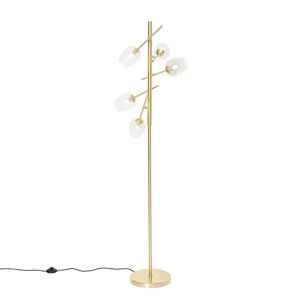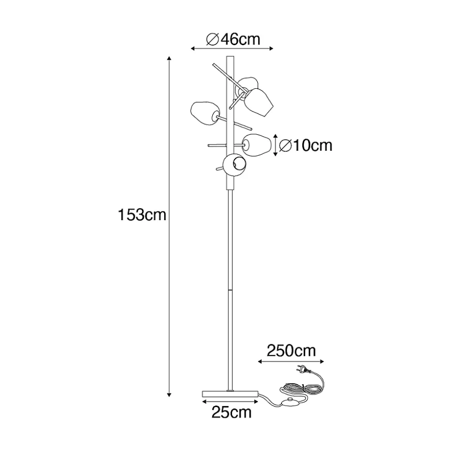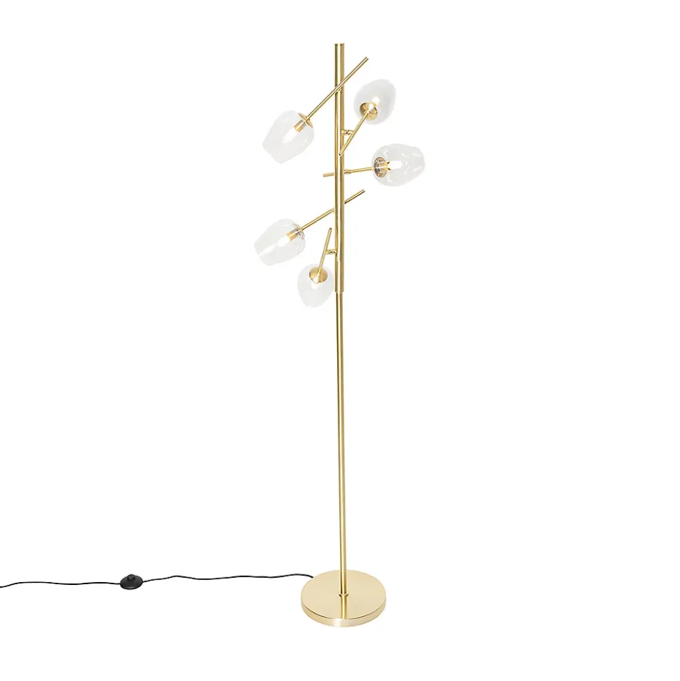 Un design élégant et unique, ce lampadaire Elien ! Une lampe classique avec une belle finition, un cadre doré et des abat-jour en verre. Une véritable lampe d’ambiance que vous pouvez placer n’importe où dans la maison ! Un magnifique complément pour le salon, le hall d’entrée ou la chambre à coucher. Elle mesure 153 cm de haut et 46 cm de diamètre. Laissez votre Elien briller dans votre maison ! Veuillez noter que la lampe est fournie sans ampoules, commandez vous-même 5 ampoules G9 de 28W maximum. Un véritable ajout élégant à votre intérieur, cet Elien !