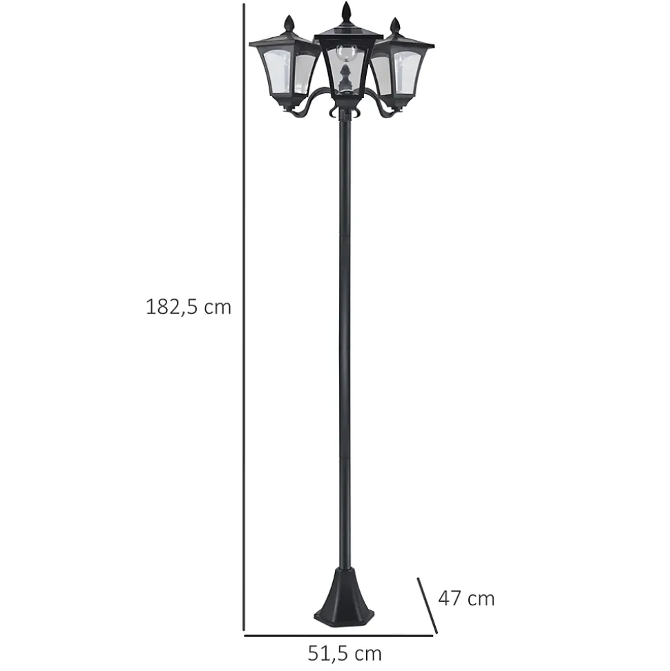 Ce superbe lampadaire LED noir 3 têtes à énergie solaire apportera une touche d’élégance et de romantisme à votre jardin. Doté d’un système interne de gestion de l’éclairage via détecteur de luminosité, il illuminera l’espace de votre choix : terrasse, bo