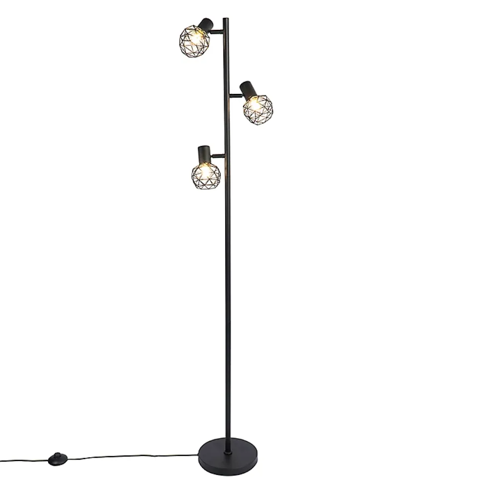Un lampadaire qui fera sensation dans votre maison : notre Mesh ! Son design intemporel noir et ses abat-jour ouverts, à la forme unique et séparée, lui confèrent un véritable effet « wow ». Il mesure 150 cm de haut, et sa base a un diamètre de 21 cm. Il est livré avec un câble de 250 cm de long. Vous pouvez le compléter avec trois ampoules E14 d’une puissance maximale de 40W. Ce lampadaire n’est pas fourni avec des ampoules. Un élément d’ambiance supplémentaire dans la chambre à coucher ou dans le salon, près de la télévision. Les spots peuvent être pivotés et orientés séparément, vous permettant de choisir où la lumière brille. Très pratique pour lire, par exemple ! À noter : ce lampadaire ne peut être atténué qu’avec un variateur externe (non inclus). Mesh ajoute du style à votre espace, même lorsque la lumière est éteinte !