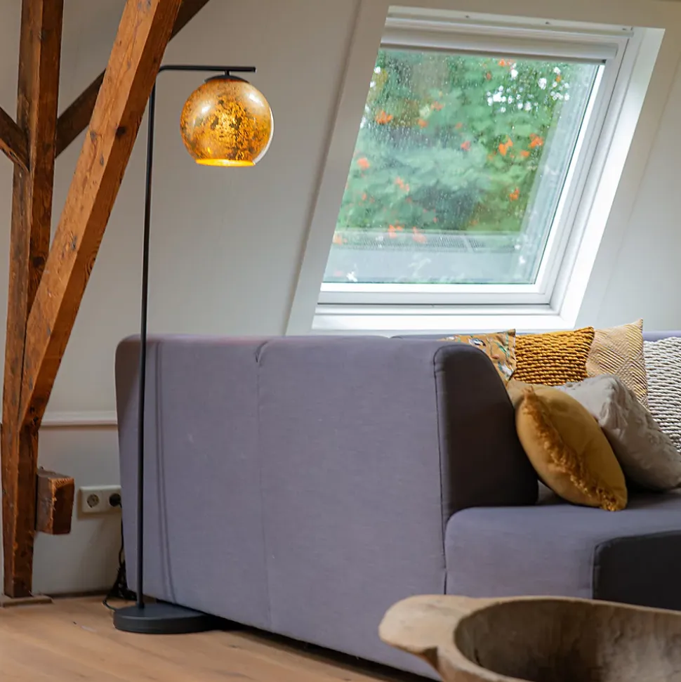 Avec le lampadaire Bert, vous pouvez compléter votre intérieur ! Il s’intègre parfaitement à un intérieur design. L’appareil est en or/laiton et noir, et est fabriqué en verre et en acier. La hauteur de la lampe est de 148 cm, sa longueur de 28 cm et sa largeur de 38 cm. Le diamètre de la base est de 28 cm. N’oubliez pas de commander une ampoule séparément avec un culot E27, car elle n’est pas incluse. L’article est fourni avec un cordon et une fiche. Le cordon mesure 250 cm de long. Bert est dimmable, vous pouvez donc facilement ajuster l’ambiance. À noter : ce lampadaire n’est pas fourni avec un variateur d’intensité. Bert est un véritable atout. Créez l’ambiance idéale dans votre maison avec ce lampadaire.