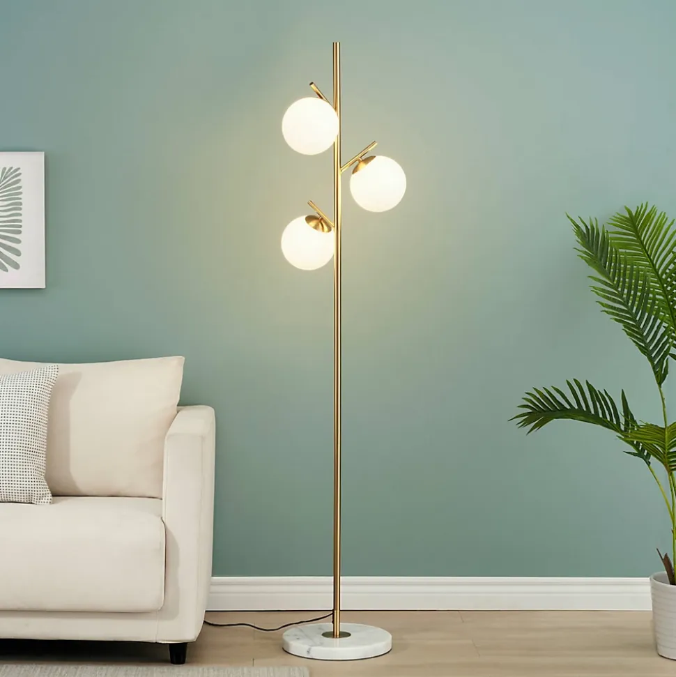 Plongez dans un univers de glamour avec le lampadaire Estrela, une pièce remarquable qui conjugue luxe et élégance. Son socle en marbre blanc, son pied en métal doré et ses trois verres blancs forment une composition à la fois majestueuse et délicate, rappelant la silhouette gracile d’un arbre lumineux. Avec une hauteur de 165 cm et un socle de 30 cm de diamètre, ce luminaire ajoute une touche sophistiquée à votre intérieur tout en diffusant une lumière chaleureuse grâce à ses trois ampoules G9.) Assemblage simple requis (