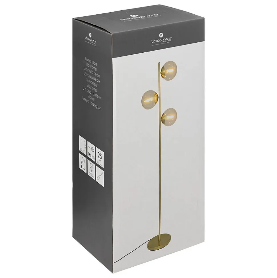 En quête d’un luminaire au style sophistiqué pour sublimer votre univers déco ? Le lampadaire droit « Collectionneur » Atmosphera devrait vous plaire !Élégance des lignes et des matériauxComposé d’un grand pied en métal teinté dans un coloris laiton, ce lampadaire droit « Collectionneur » est équipé de 3 globes en verre qui vous permettront de créer une ambiance chaleureuse.Un esprit décorateurDans un salon ou une salle à manger, vous pourrez associer ce lampadaire à du mobilier en bois et des accessoires déco en verre. Placez-le sur un grand tapis pour profiter d’un ensemble design et confortable !Installez votre lampadaire droit « Collectionneur » près d’une table basse en verre Atmosphera et ajoutez un tapis graphique.Le petit plus décoComplétez votre déco avec des objets déco en laiton pour former un rappel de matière.
