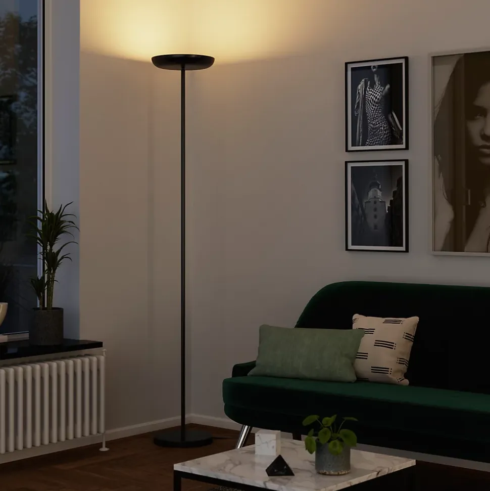 Lampadaire en métal noir mat LED intégrée 2500lm dimmable 35W ⌀30xH.181cm, Goodhome Songor