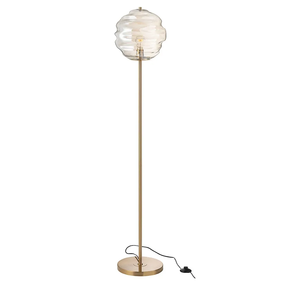 Informations Techniques :Dimensions : L. 30 x l. 30 x H. 156 cmCâble : L. 480 cmMatières : 80% Verre, 10% Métal & 10% AluminiumSpécificités :Moderne & ChicLampadaire design rucheInterrupteur à piedAmpoule non incluseÀ monter soi-mêmeDouille : E27Puissance : 40WPoids : 6,12 kgCouleur : Cognac Clair